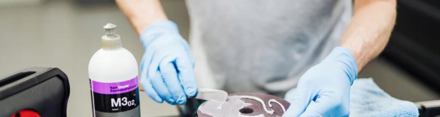 використання полірувальної машини в поєднанні з відповідними полірувальними подушечками залежно від типу дефектів фарби. Для видалення слідів і матування, залишених папером із зернистістю 1200 - 2500, рекомендується використовувати полірувальну подушечку з овечої вовни. Однак при видаленні дефектів і матування паперу із зернистістю 2000-5000 рекомендується використовувати Heavy Cut Pad. Рухи слід виконувати хрестоподібно, а поліроль наносити із середньою швидкістю та середнім тиском.