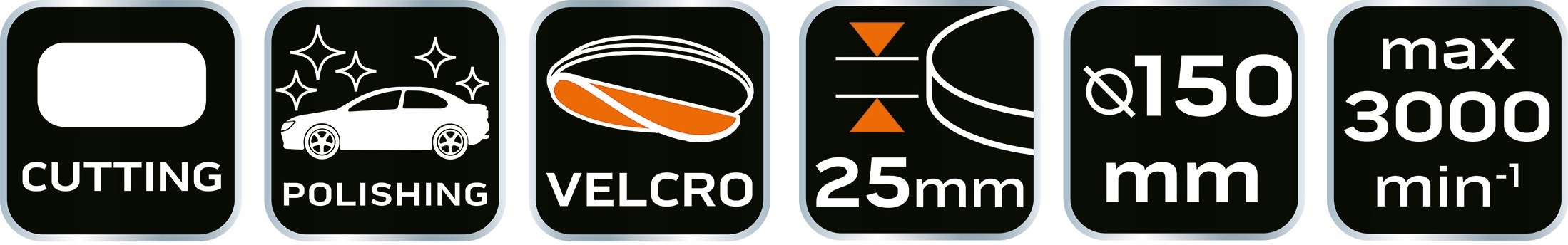 Полірувальна подушечка 150 x 150 мм x 25 мм, середня губка, помаранчева: