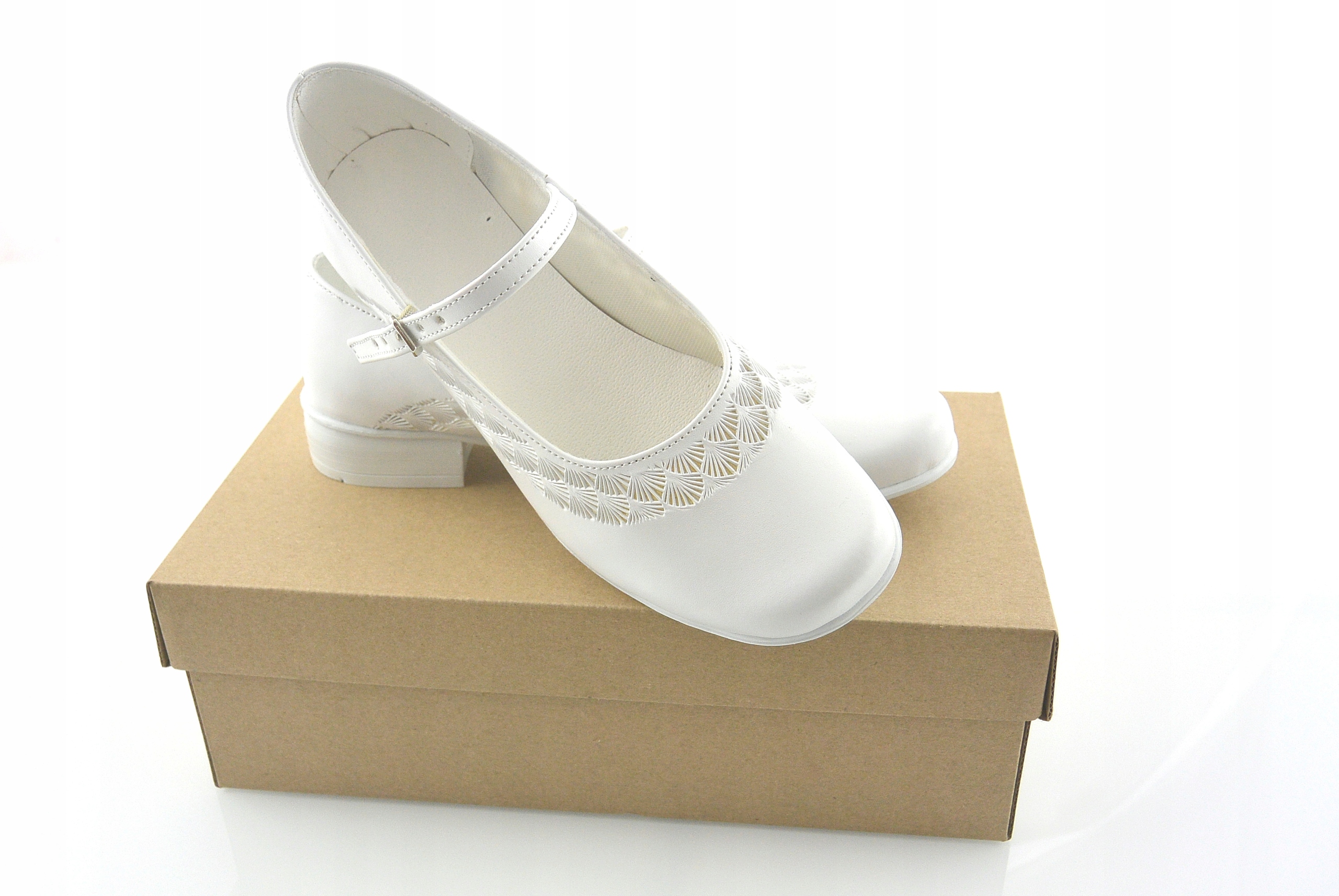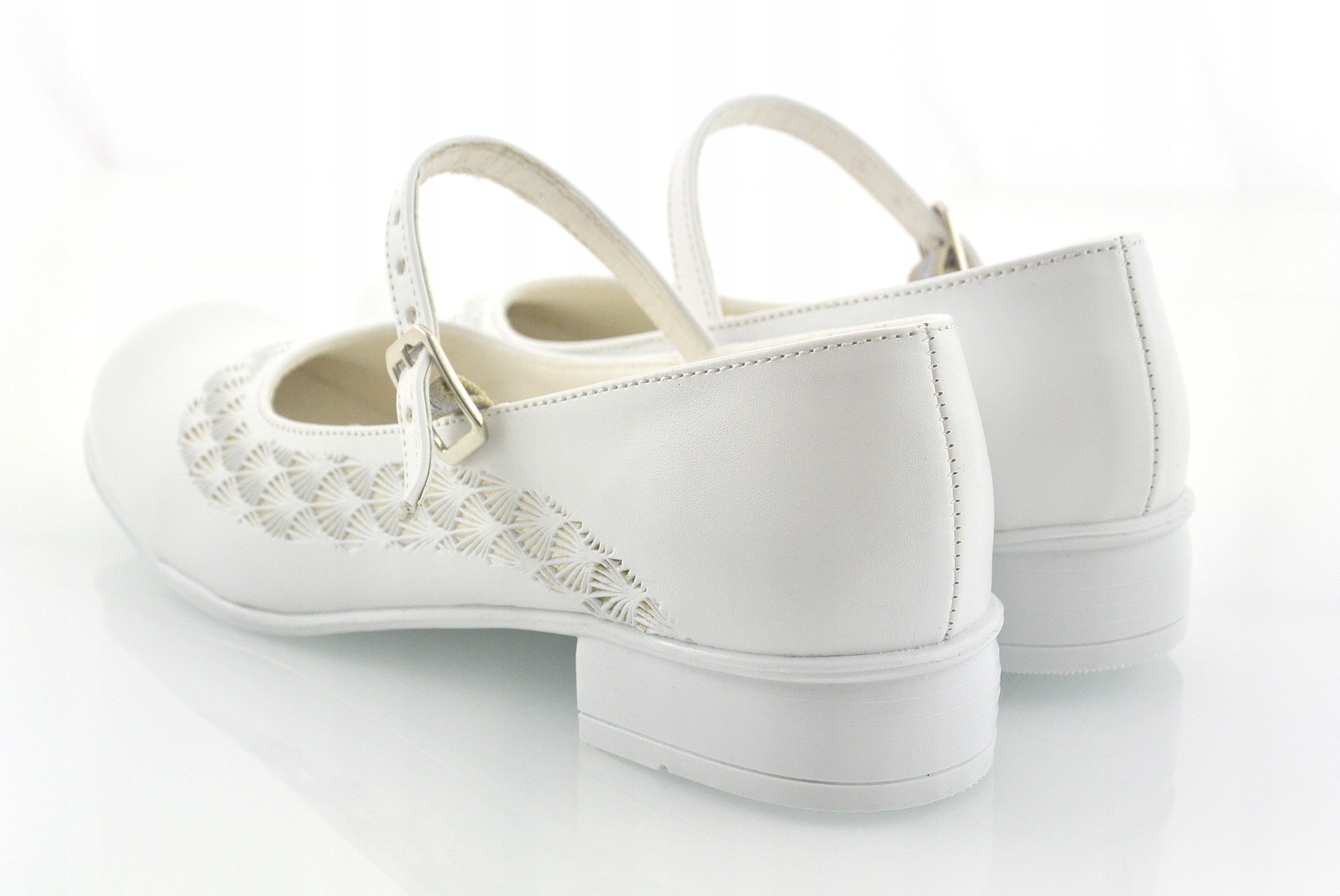 POLISH WHITE BALLET SHOES COMMUNION SHOES, EMBOSSED PATTERN r33