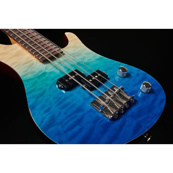 - вгору: стьобаний клен, що надає інструменту елегантний і унікальний вигляд завдяки градієнтному обробці в кольорі прозорого синього. Звук GRYF: запечений клен, стійкий до вологості та довговічних змін, що збільшує стабільність гри. Технічний: