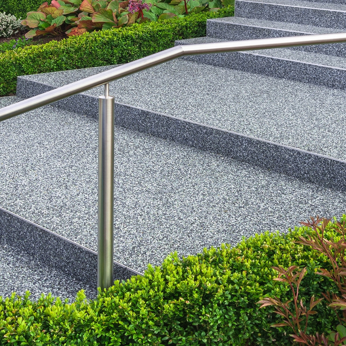 Високо гнучка безбарвна поліуретанова смола з підвищеною стійкістю до УФ та погодними умовами для виготовлення підлоги та захисту за допомогою кольорових кварцових агрегатів та кам'яних систем, таких як всередині та зовні. Субстрати, які потребують здатності подолати подряпини, зокрема на внутрішніх та зовнішніх стоянках, а також на терасах та балконах
