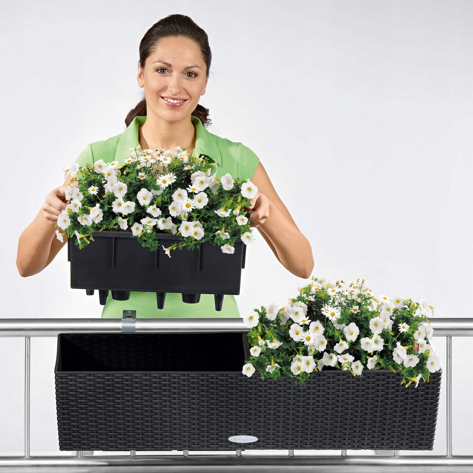 Ящики Balconera можна повісити на стіну або балконні поручні діаметром до 38 см за допомогою спеціальних кронштейнів. Для балюстрад з окружністю понад 38 см рекомендуємо купувати довші монтажні стрічки.