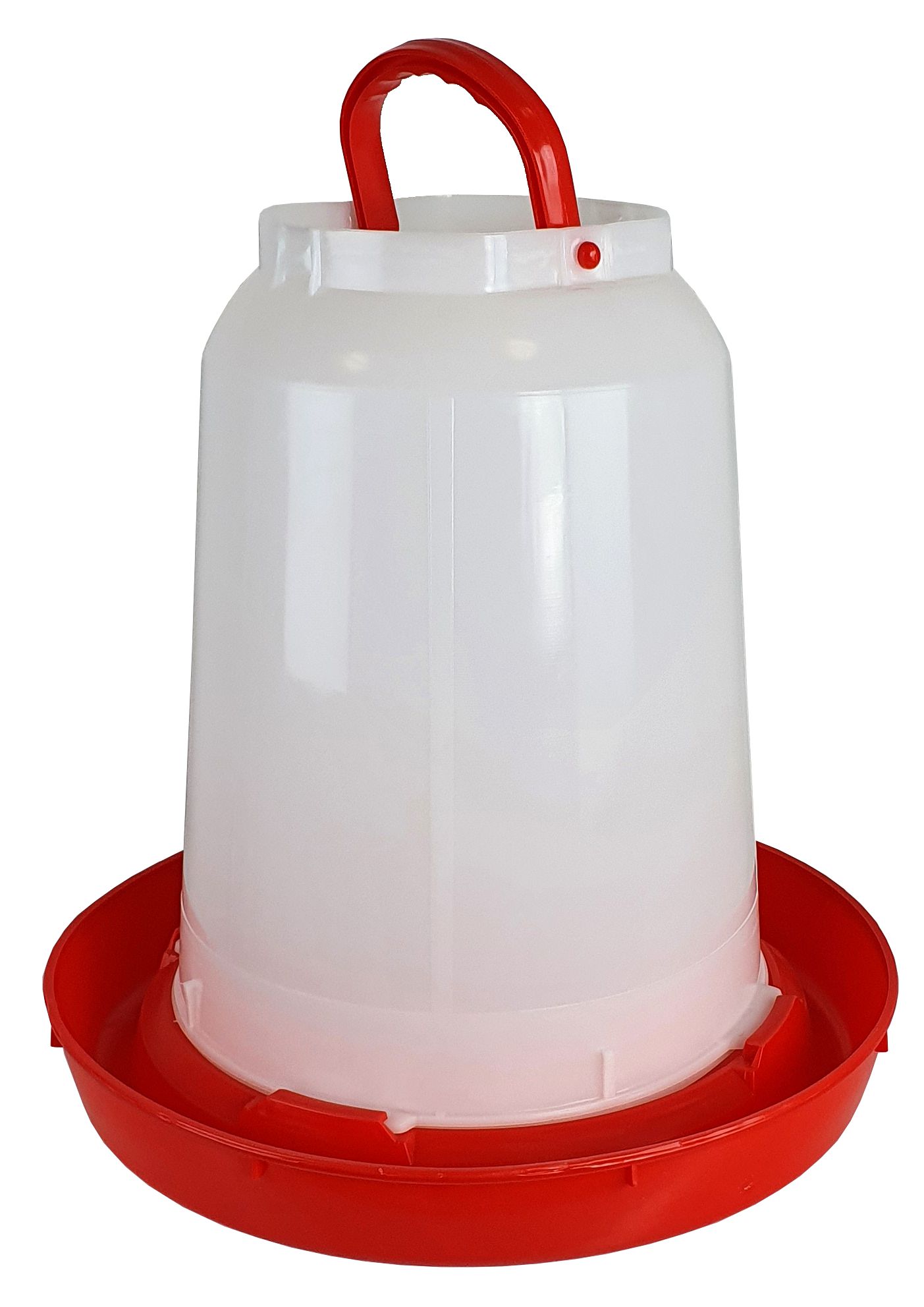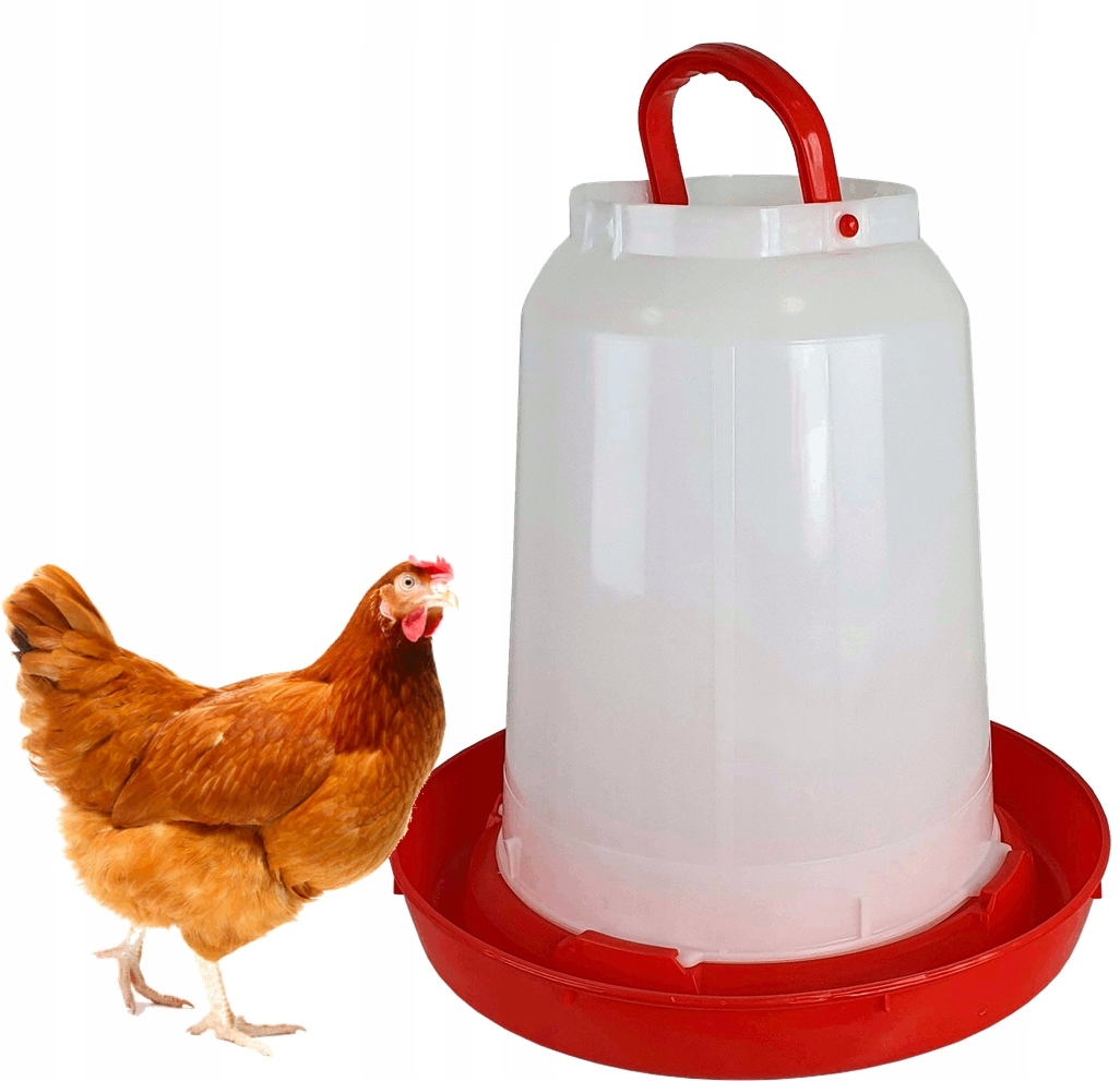 Поїлка міцна, що нагвинчується, призначена для напування всіх видів птиці, в тому числі: курей, індиків, голубів, качок, гусей та декоративної птиці. Ємність виготовлена з високоякісних матеріалів: і резервуар, і чаша міцні, міцні, їх легко мити та дезінфікувати. Бак також прозорий, що значно полегшує контроль рівня води. Він також має ручку для підвішування та перенесення поїлки з одного місця на інше. Чаша червона.