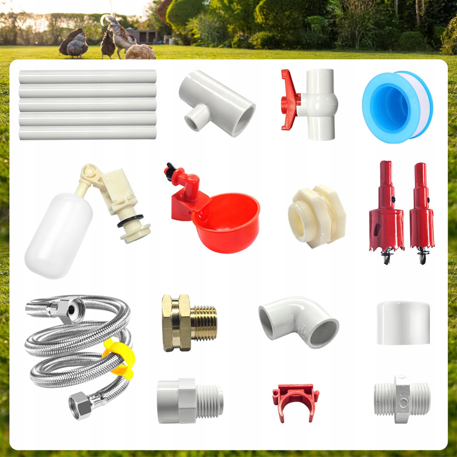 🐓🐓【Повно】 Цей автоматичний набір для водопостачання птиці включає водопровідні труби з ПВХ. Більше немає необхідності купувати додаткові ПВХ водопровідні труби, що вирішує проблему невідповідного розміру та неможливості використання окремо придбаних ПВХ водопровідних труб.