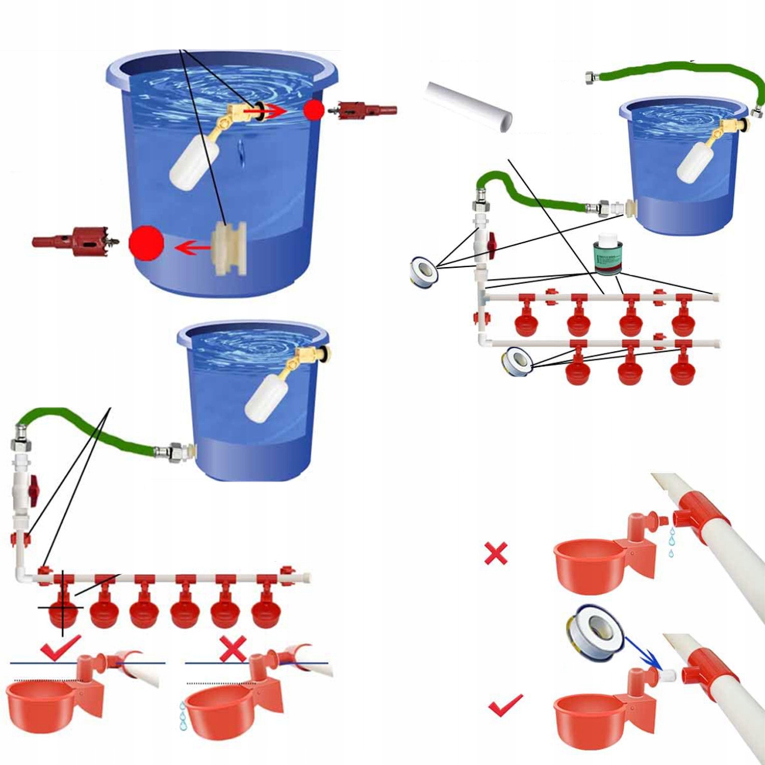 🐓🐓【Легке збирання】Система поїння курчат своїми руками, яка дозволить вам повністю звільнити руки. Наша автоматична система напування птиці дуже проста в установці та містить докладні інструкції. Люди без досвіду монтажу можуть самі побудувати цю трубопровідну систему напування курчат.
