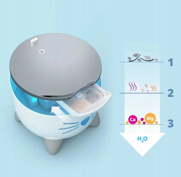 - спеціальний додаток для телефону показує рівень води, коли мити чашу, промивати фільтр чи замінювати його, дозволяє встановити графік роботи фонтану