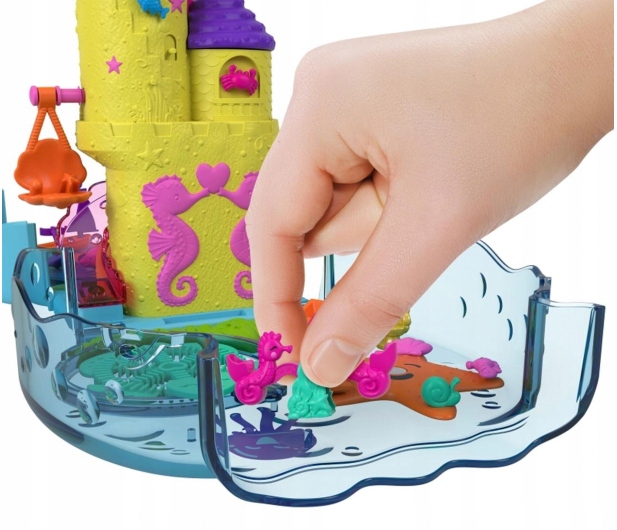 Відкрийте, щоб знайти багато місця для ігор, 10 функцій, мікроляльки Поллі та русалка, розчин для бульбашок і 18 аксесуарів.