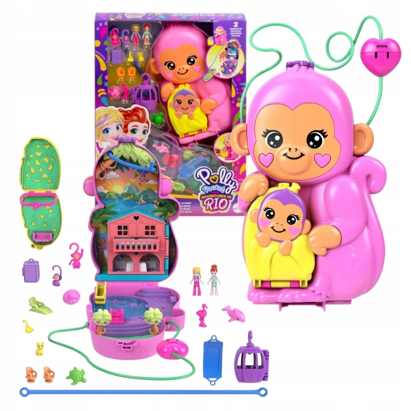 занурюйтесь у тропічний світ, наповнений пригодами з набором Polly Pocket Compact Monkey Bag ! Ця незвичайна іграшка доставить вашу дитину до середини джунглів, де чекають хитрощі мавпи та незліченну кількість атракціонів.