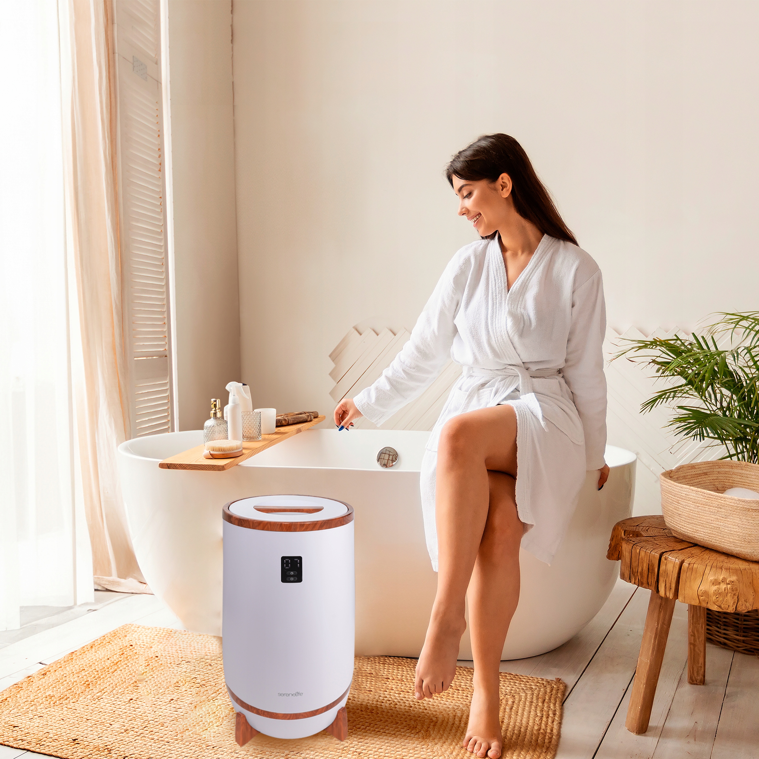 4 Вбудований таймер дозволяє вибрати один із чотирьох разів опалення: 15, 30, 45 або 60 хвилин - ідеальне рішення завжди мати приємно теплий рушник або ковдру. 4Інноваційна ручка ароматів дозволяє ввести розслаблюючий аромат у внутрішні приміщення. Просто додайте свій улюблений аромат, щоб кожен рушник або ковдра отримали ноту Spa-розмову.