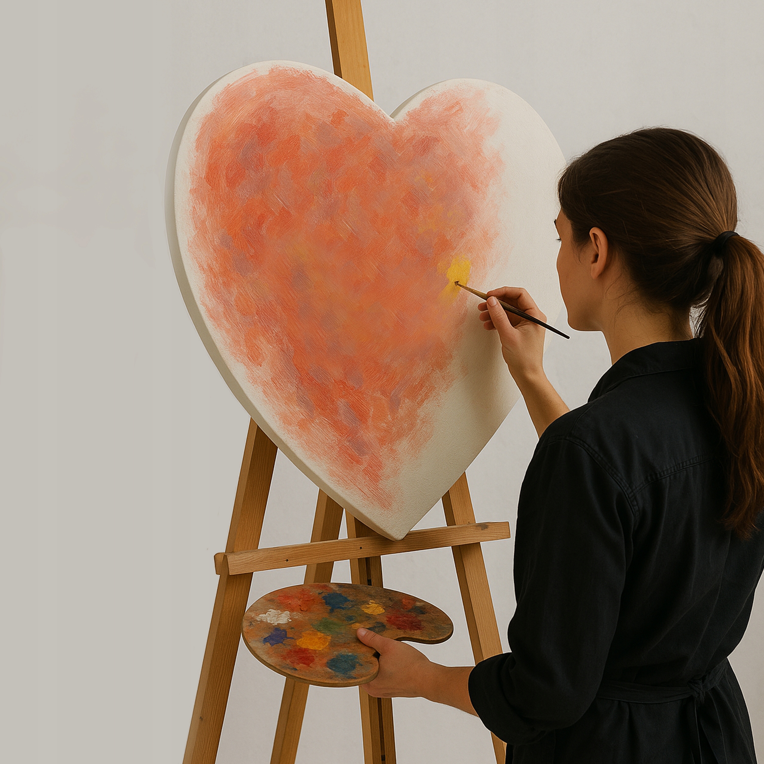 Полотно має розміри приблизно 50 x 50 см, виміряні від найвіддаленіших точок форми серця. Ця незвичайна форма додає особистий та емоційний вимір вашим роботам, роблячи кожну з них унікальною та повною характеру.