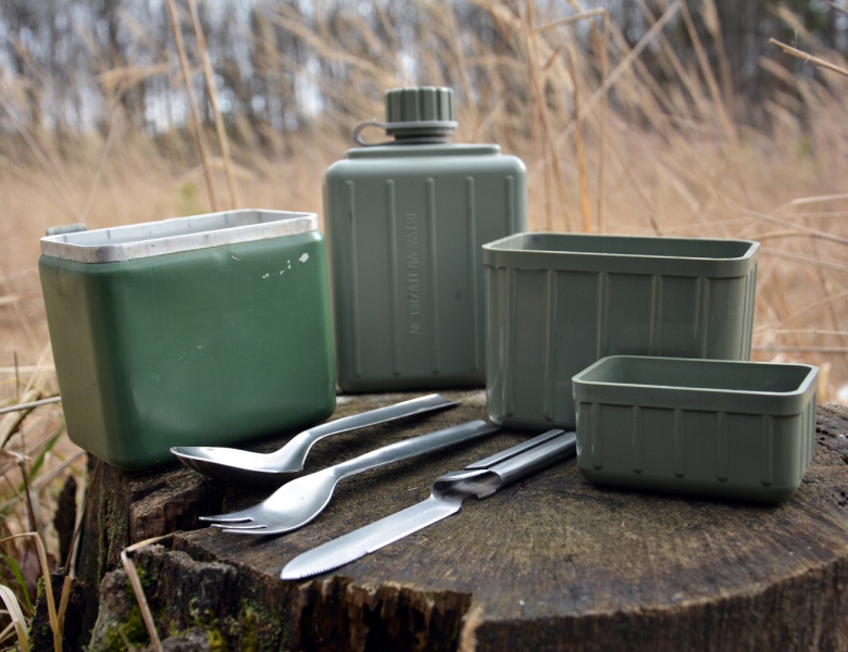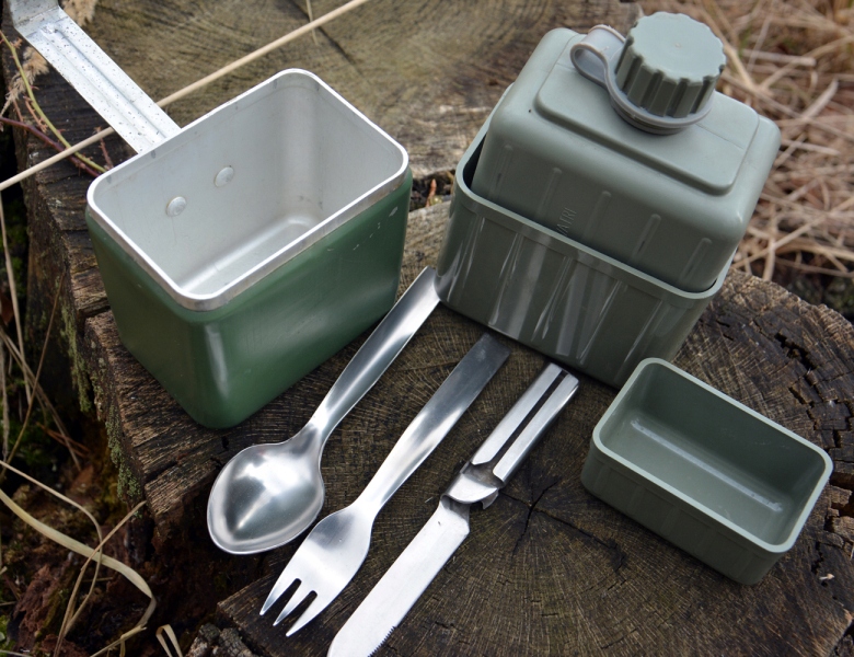 Оригінальний польовий комплект з армії колишньої Югославії. Безперечною перевагою є невелика вага набору і невеликий простір, який нам знадобиться для його укриття. Всі елементи набору складаються в одне ціле, а потім ми можемо помістити його в тканинний чохол, який можна прикріпити до пояса. Це буде дуже корисно для різних видів походів або кемпінгу.