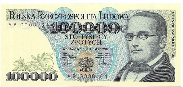 Польща -банкно з польської народної республіки -1990- 100 000 PLN Stanisław Moniuszko -kopia -l18-6