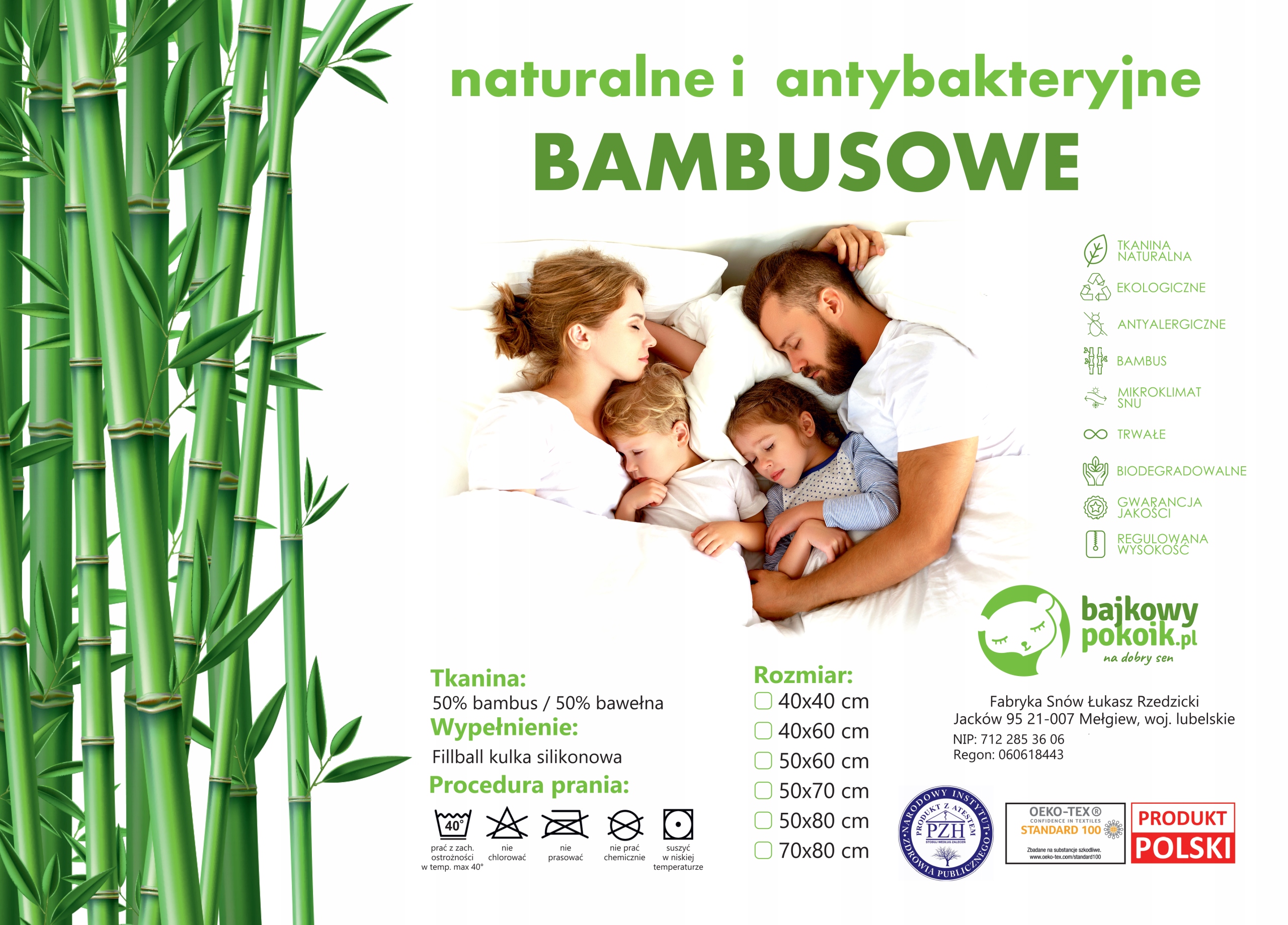 POLAND BAMBOO Cushion ZIpper adjustable 40x60