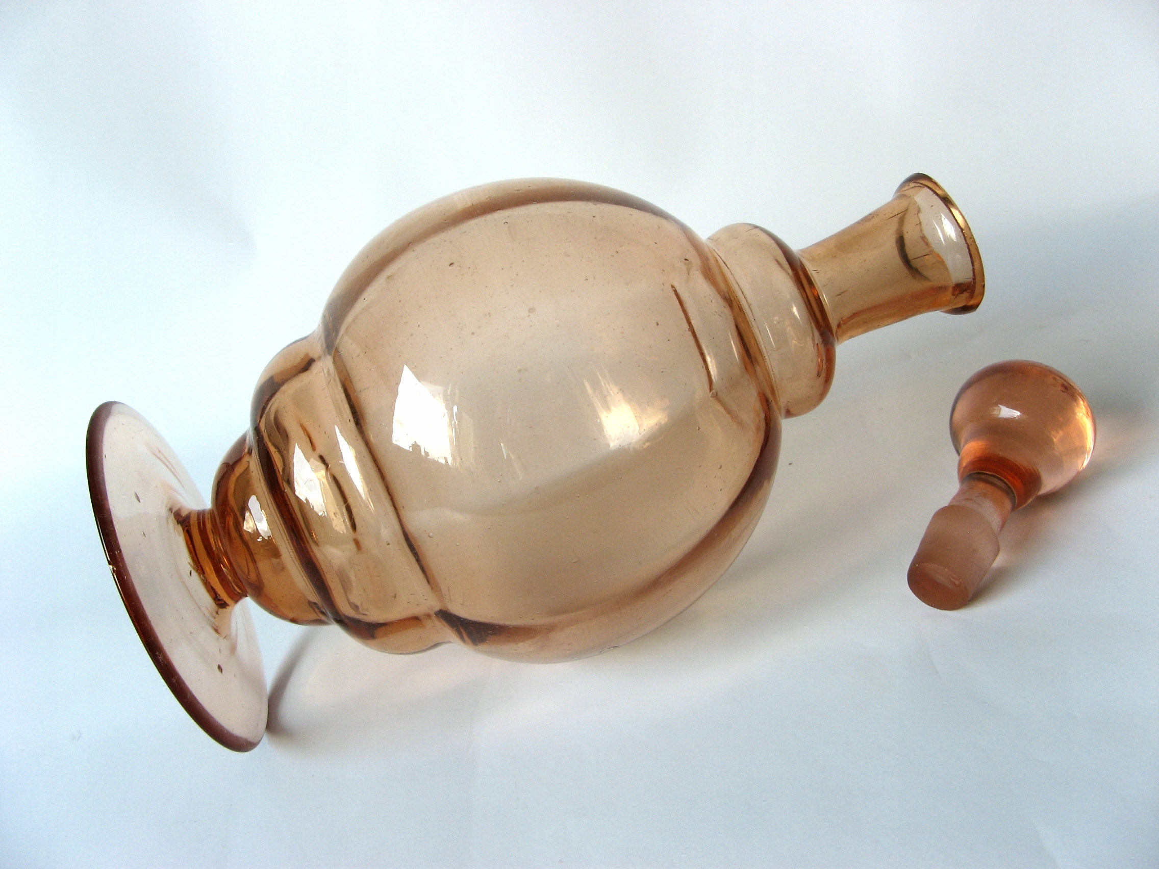 Польща Довоєнна Графин Huta HORTENSJA на НОЖКУ РОЖЕВИЙ розовий _!!!