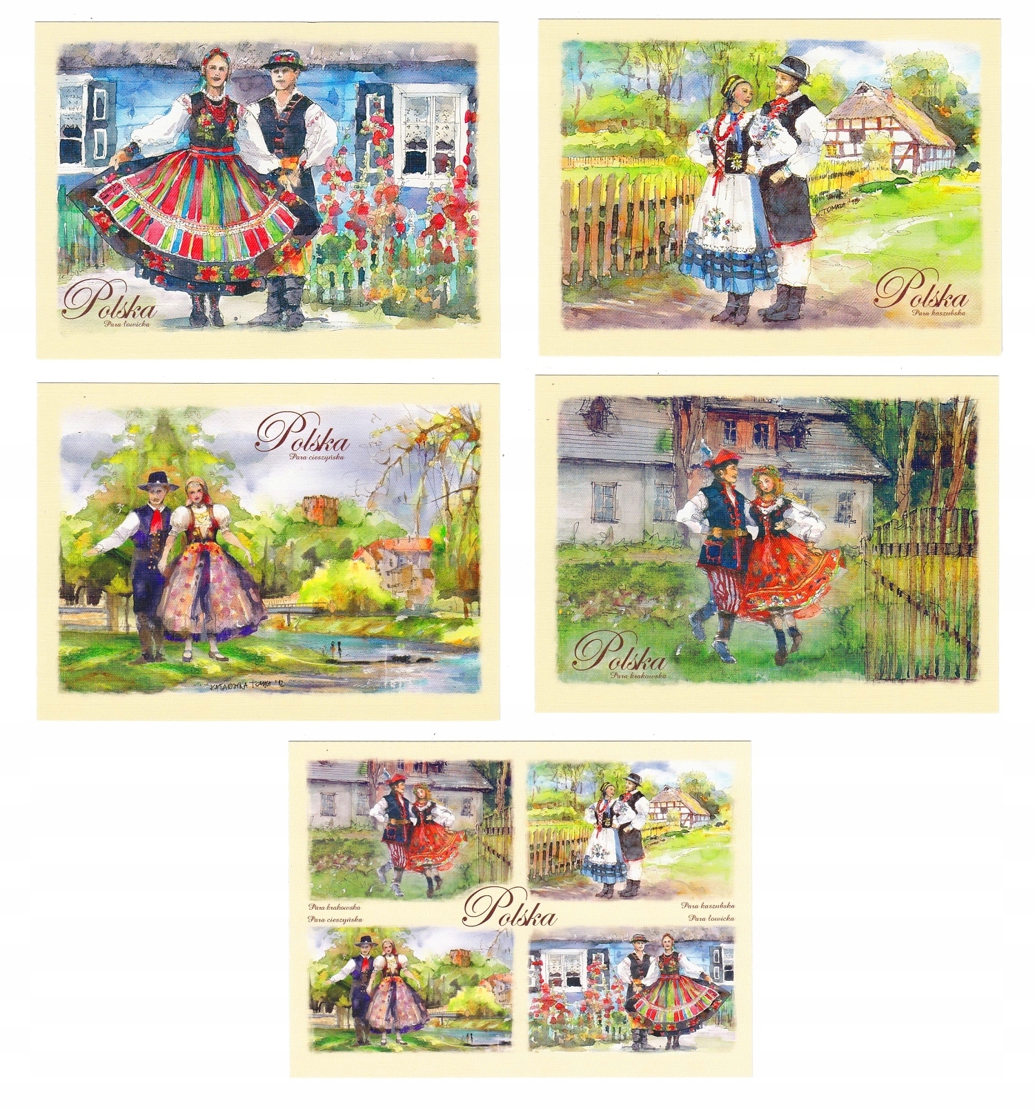 ПОЛЬЩА FOLKLOR STROJE Листівки акварельними фарбами 5 шт