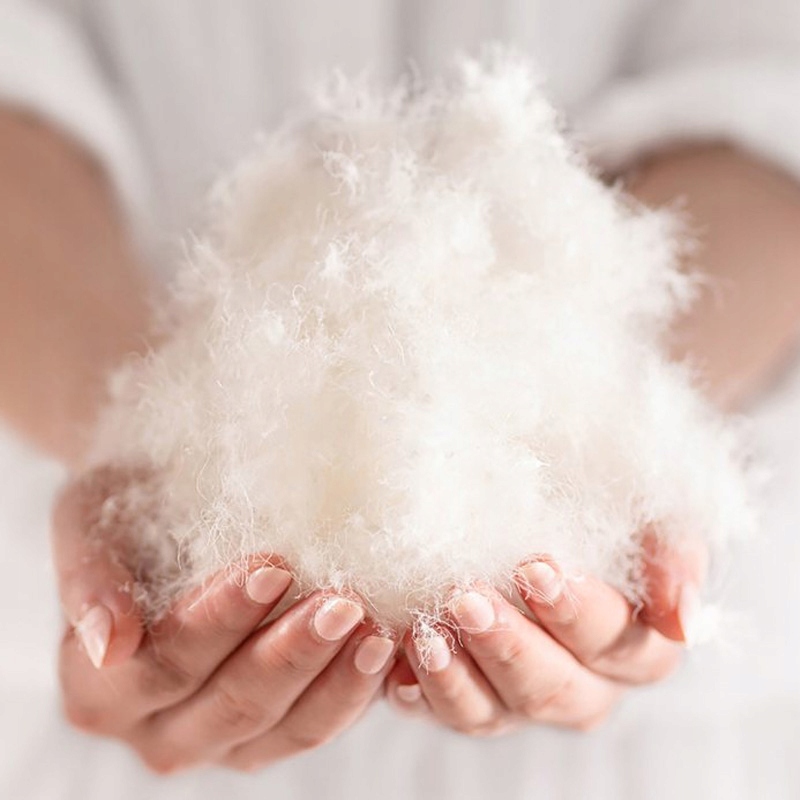 Подушка наповнена поліефірними волокнами (нестьобана подушка) зі статичними властивостями, завдяки яким подушка завжди повертається до своєї попередньої форми. Він оброблений матеріалом з щільним плетінням, що не пропускає наповнювач.