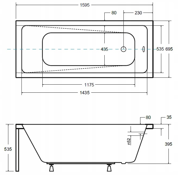 Корпус ванни: акриловий, глянцевий білий, універсальний щодо позиціонування щодо ванни, кріпиться за допомогою затискачів - легкий доступ, наприклад, до зливу під ванною. Корпус складається з довгої передньої панелі 160 см і короткої панелі 70 см. Довга панель корпусу має виріз для ніжок. Висота корпусу 50 см.