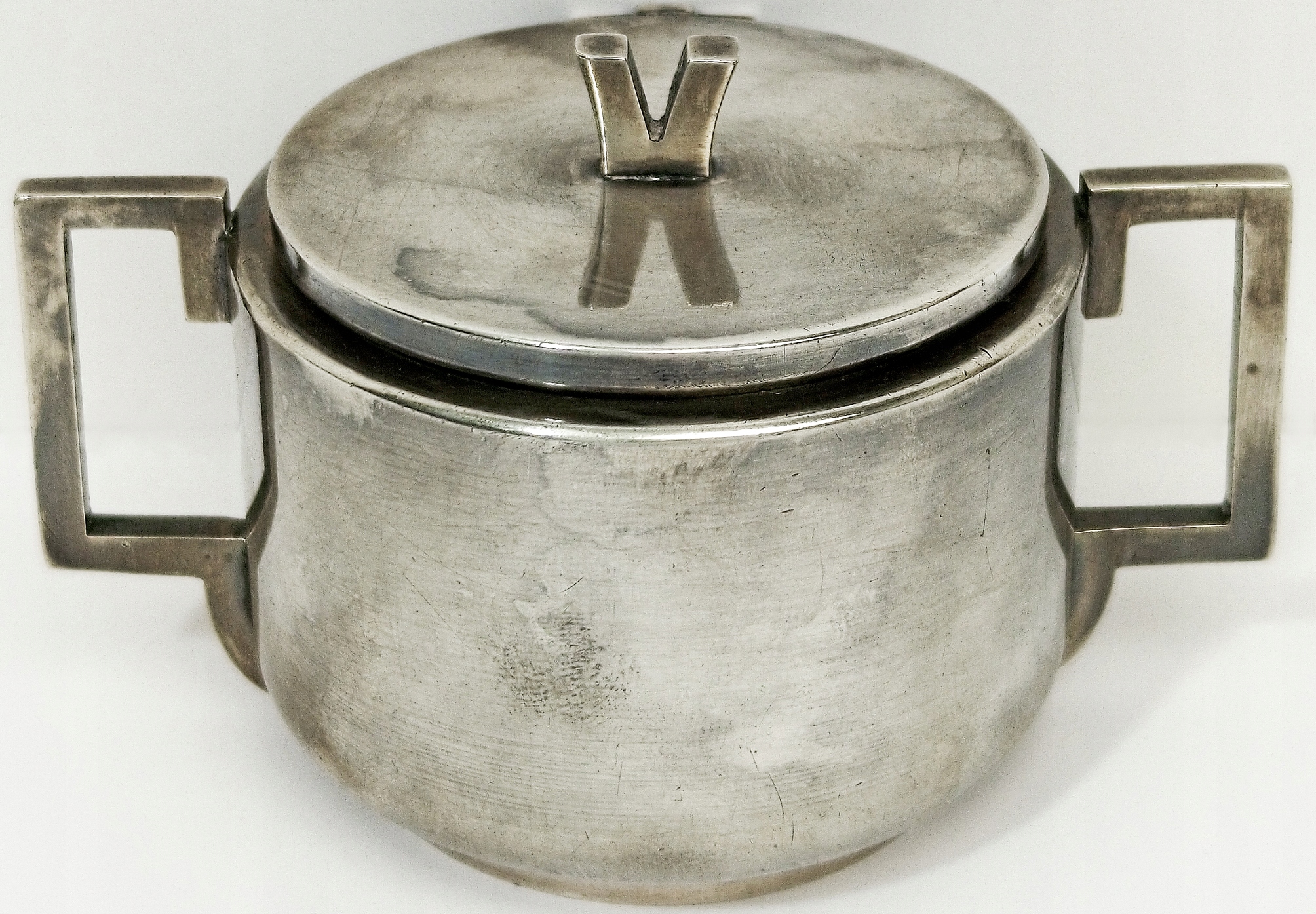 Прекрасний кондитерський кондитер арт -деко, зроблений у братів Геннеберга у Варшаві. У нижній частині довідкового номера підрядника B. Henneberg / Warsaw та каталог номер 2740. Позолочений інтер'єр. Стан об'єкта схожий на ідеальний. Барвиста патина. Злегка не -плессована кришка.