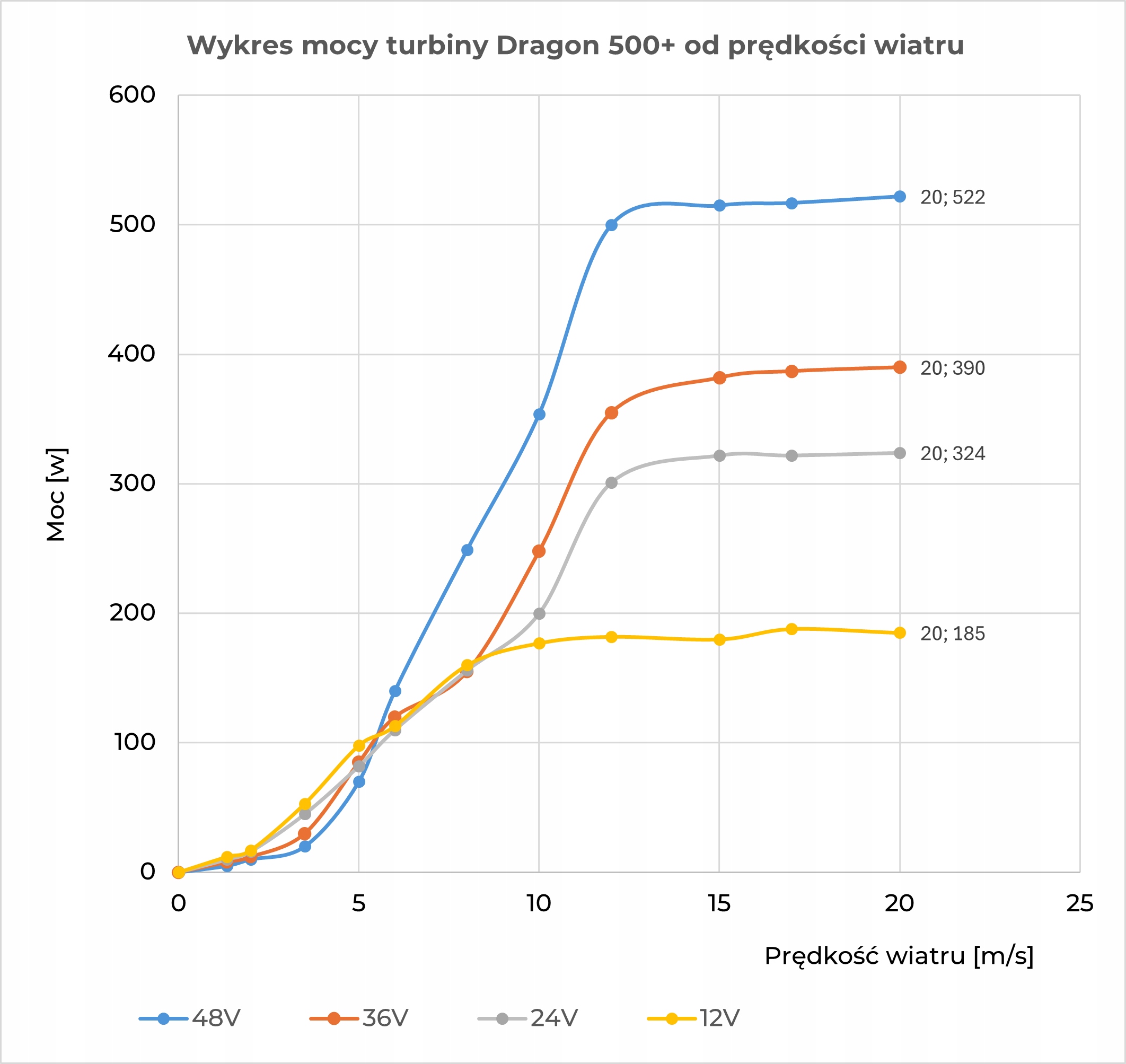➖ У випадку інших вітряних турбін, доступних на ринку, виробництво електроенергії починається з 4 м/с, і генератори в цих турбінах не виробляються в Польщі і тому ніколи не адаптувалися до польських вітрових умов, оскільки вони були випробувані в таких умовах, як: Голландська та Британська (які незрівнянно відрізняються від польських умов).