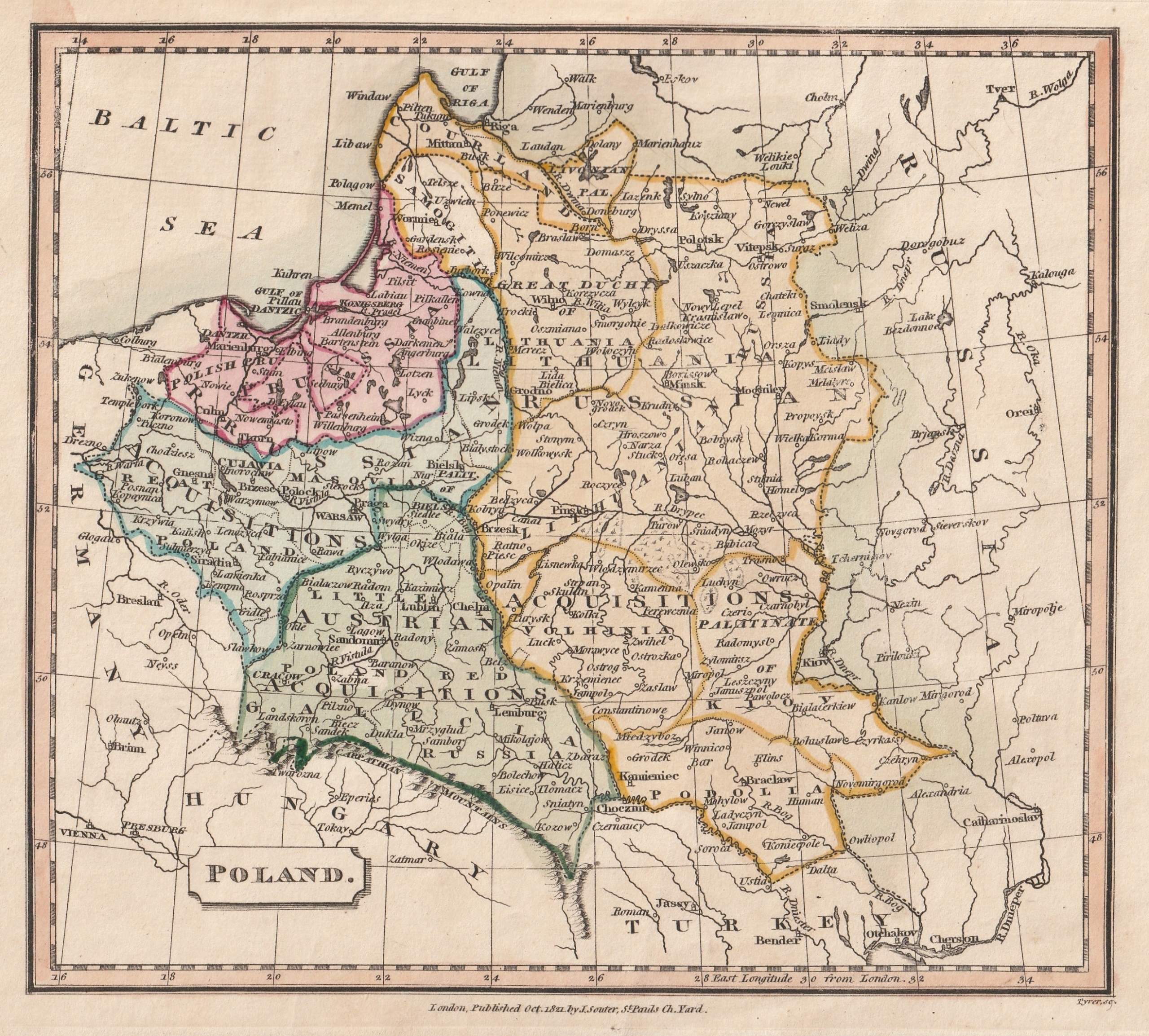 ПОЛЬЩА. Карта після розділу. Дж. Тайрер, 1821