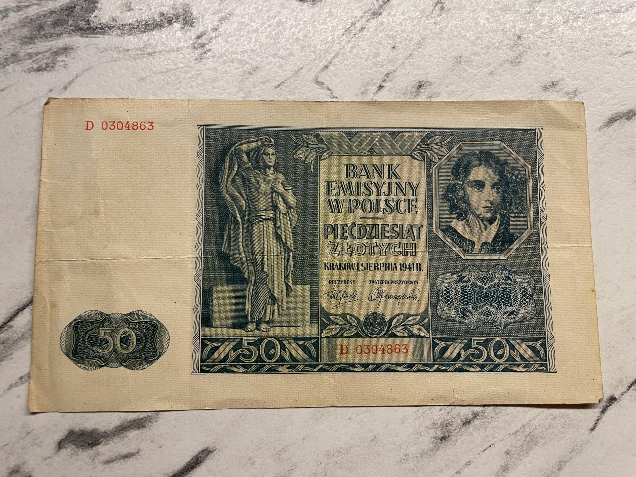Оплачивая «Polska - 50 zlotych - 1941 - seria D», вы можете быть уверены, что данное изделие из каталога «1939 - 1941» будет доставлено из Польши и проверено на целостность. В цене товара, указанной на сайте, учтена доставка из Польши. Внимание!!! Товары для Евросоюза, согласно законодательству стран Евросоюза, могут отличаться упаковкой или наполнением.