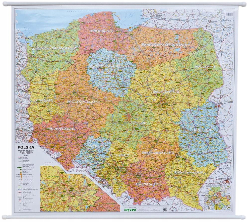 POLSKA 2024 MAPA ŚCIENNA ADMINISTRACYJNA I DROGOWA + TABLICE REJESTRACYJNE