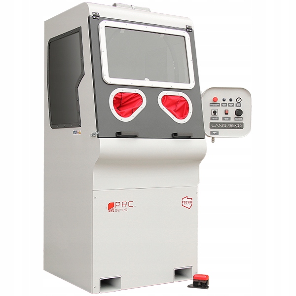 Стандартизований затискний з’єднувач, встановлений у пристрої, захищає від випадкового від’єднання шланга подачі стисненого повітря, забезпечуючи його швидку та безпечну заміну, незалежно від його діаметра. Комфорт і безпека роботи забезпечується використанням точного світлодіодного освітлення і 3-елементного пакету візора зі змінними захисними плівками розміром 410 × 740 мм. Щоб відповідати зростаючим вимогам безпеки, усі пістометні машини PRC були оснащені автоматичним запобіжним вимикачем, який перериває роботу пристрою при відкритті дверей робочої камери. Залежно від вимог, для дробеструйних машин серії PRC можуть використовуватися три типи виділених систем сепарації та знепилення з різною ефективністю очищення робочої камери та ступенем відновлення абразиву.