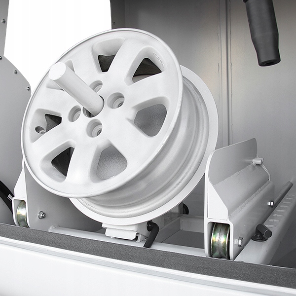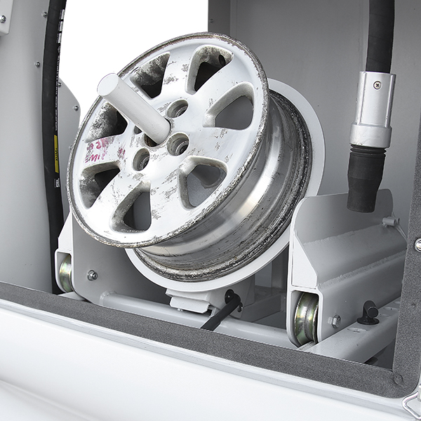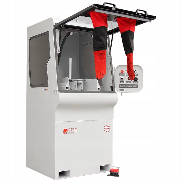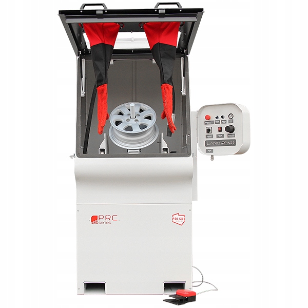 Поструйні машини серії Land Reko® PRC — це спеціалізовані абразивно-струменеві машини, призначені для очищення дисків автомобілів. Профільований поворотний робочий стіл, оснащений 3-ступінчастим регулюванням кута положення заготовки, позитивно впливає на процес обробки. Обертання робочого столу навколо своєї осі забезпечує вплив абразивного потоку в діапазоні 360 градусів і отримання повторюваної поверхні з однорідною структурою і заданими параметрами. Пескоструминна машина PRC-25-13 здатна обробляти диски діаметром до 25” і вагою до 110 кг при тиску до 13 бар. Пристрій оснащений високоякісним дисковим клапаном з абразиву Clemco, який характеризується механічною міцністю та стійкістю до стирання вище середнього порівняно зі стандартними клапанами, встановленими в дробеструминних машинах конкуруючих компаній.