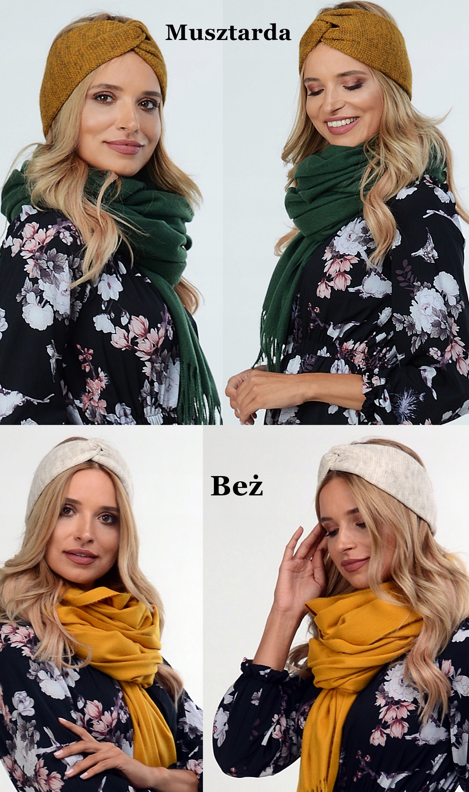 Polska damska OPASKA na zimę GRUBA CIEPŁA - KOLORY