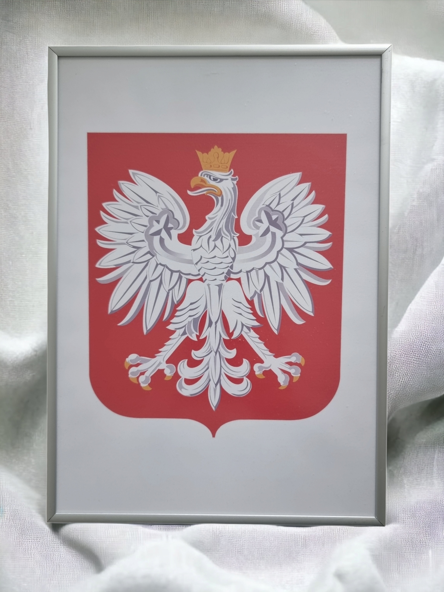 ГЕРБ ПОЛЬЩІ В АЛЮМІНІЄВІЙ СРІБЛИСТІЙ РАМІ А3