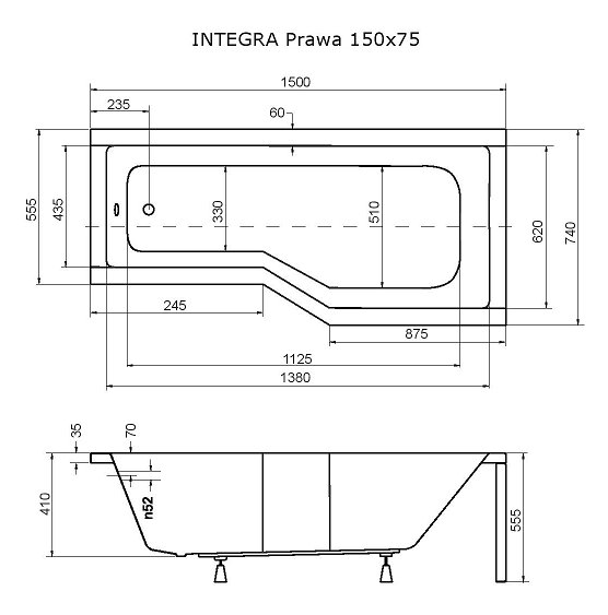 Кабіна-ванна INTEGRA 150х75 СМ КОМПЛЕКТ З КАРКАСОМ, НІЖКАМИ ТА КОРПУСОМ