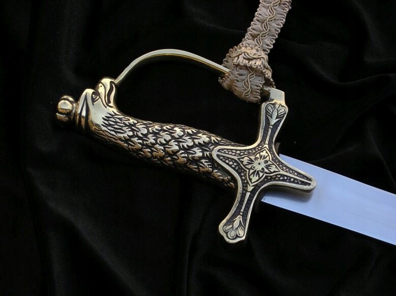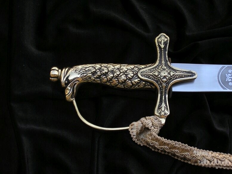 Ручка з головою орла, повністю відлита з латуні. Його форма нагадує карабельну ручку, але вона більш оригінальна за своїм дизайном і вирізняється бантом спереду. Поперечина прикрашена художнім рослинним мотивом. Корона орла - це гайка, яка кріпить лезо до руків'я. Має вигравіруваний напис «За честь Батьківщини».