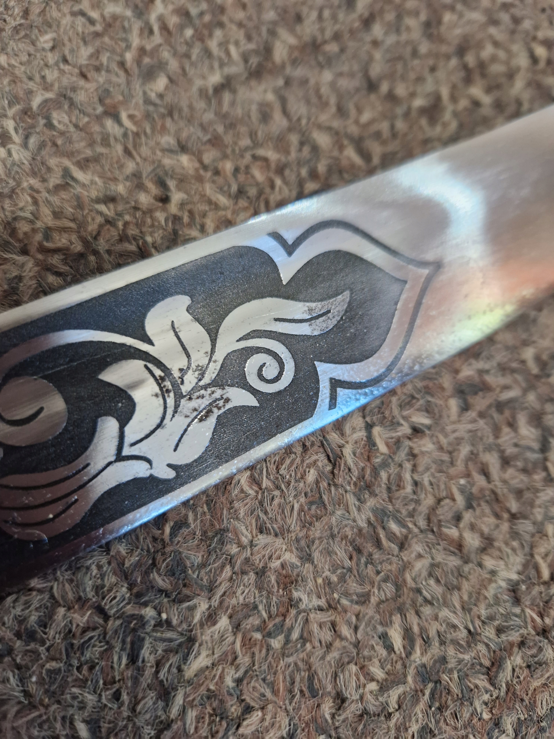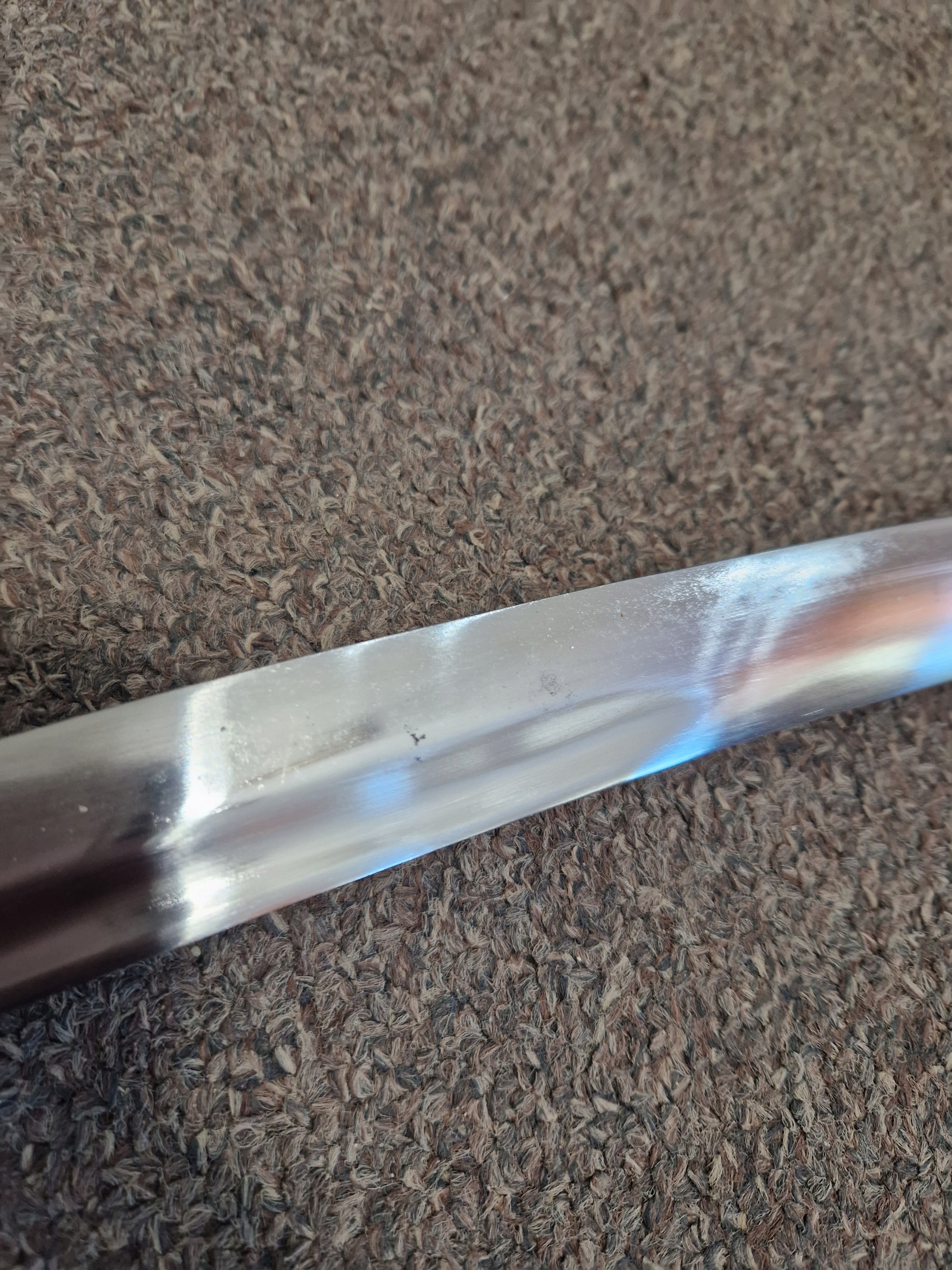 Шабля не заточена і не призначена для заточування (не підходить для фехтування). Лезо (лезо) виготовлено з полірованої вуглецевої сталі. Полірування виконується до отримання однорідної, матової, гладкої структури. Ми рекомендуємо час від часу змащувати лезо дуже тонким шаром оливкової олії або іншого мастила, призначеного для збереження сталі (це допоможе зберегти високу якість продукту).
