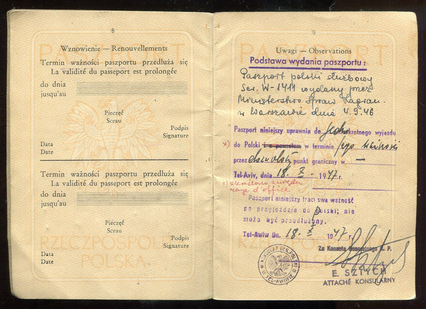 ПОЛЬСЬКА ПАСПОРТНА служба / Палестина Тель-Авів Ізраїль 1947 / рідко