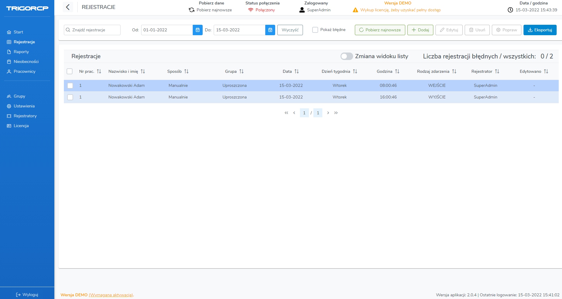 БІЛЬШЕ!! Тільки у нас разом з терміналом ви отримаєте програму TRI-GO-RCP Desktop. Ліцензійний збір на 6 місяців (входить у вартість пристрою на цьому аукціоні). Продовження ліцензії на рік коштує 200 злотих нетто. Це лише 54 ЗЕЛЕНІ на день!! Ми єдина компанія, яка додає власний додаток для обліку робочого часу (на додаток до стандартного програмного забезпечення виробника). TRI-GO-RCP Desktop — це найпростіша у використанні програма для поселення працівників. Він був розроблений і написаний у Польщі польськими програмістами. Тому він ідеально вписується в реалії польського бізнесу та найкраще відповідає вашим потребам!