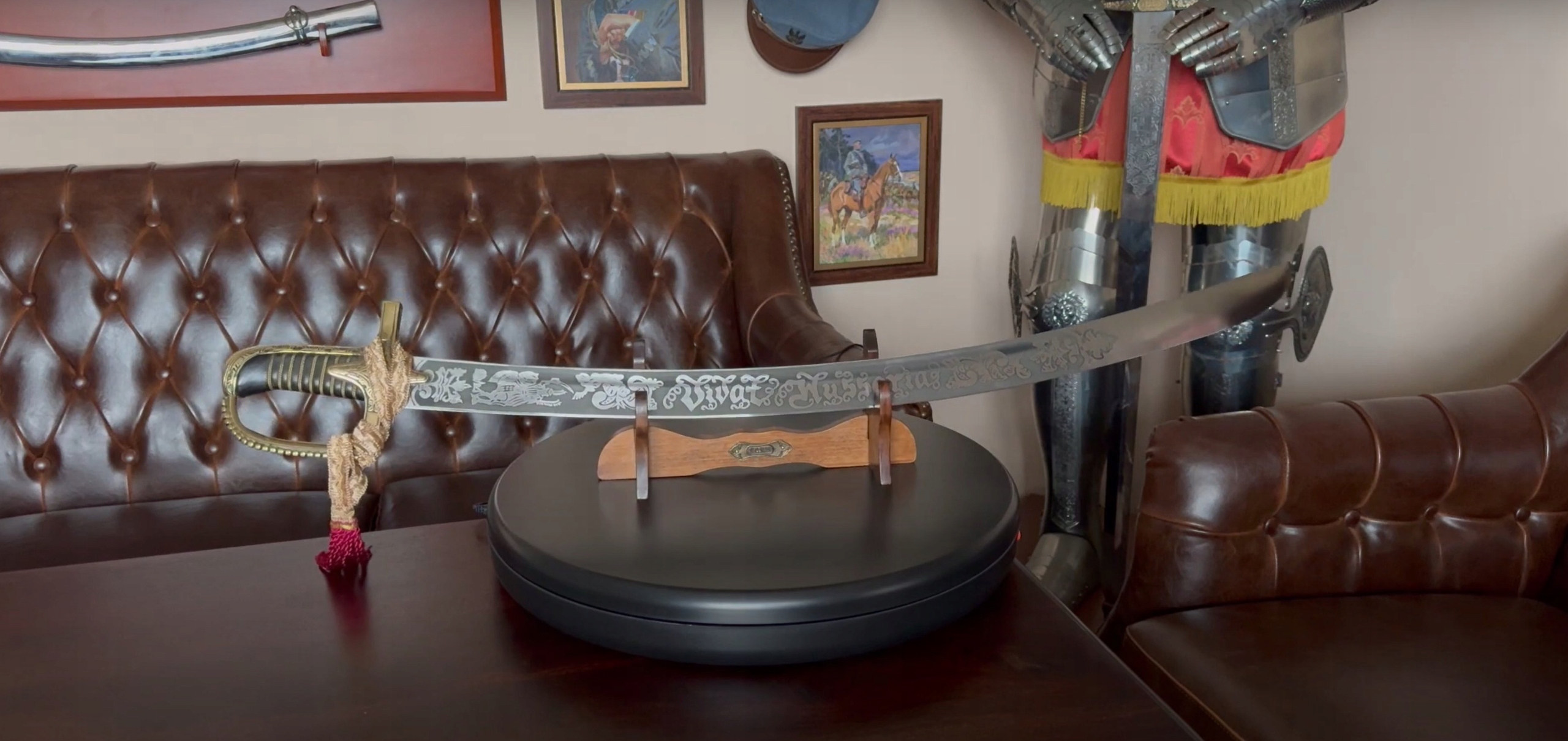 Представлена репліка є королевою польської шаблі - гусарською шаблею. Стиль і функціональність гусарської шаблі поєднує в собі риси інших шабель. Рукоять є еволюційним розвитком рукояті угорсько-польської шаблі. Палець і дужка, що замикають ручку, але не з’єднуються з навершям, західноєвропейського походження. Це дуже красива шабля з високими структурними та функціональними цінностями. Він був ідеальним для прямих відскоків, розрізів і подовжених розрізів від плеча. Багато експертів вважають її найкращою кавалерійською шаблею у світі.