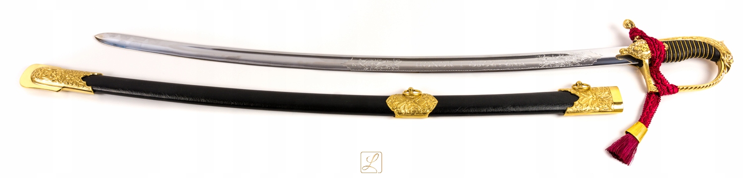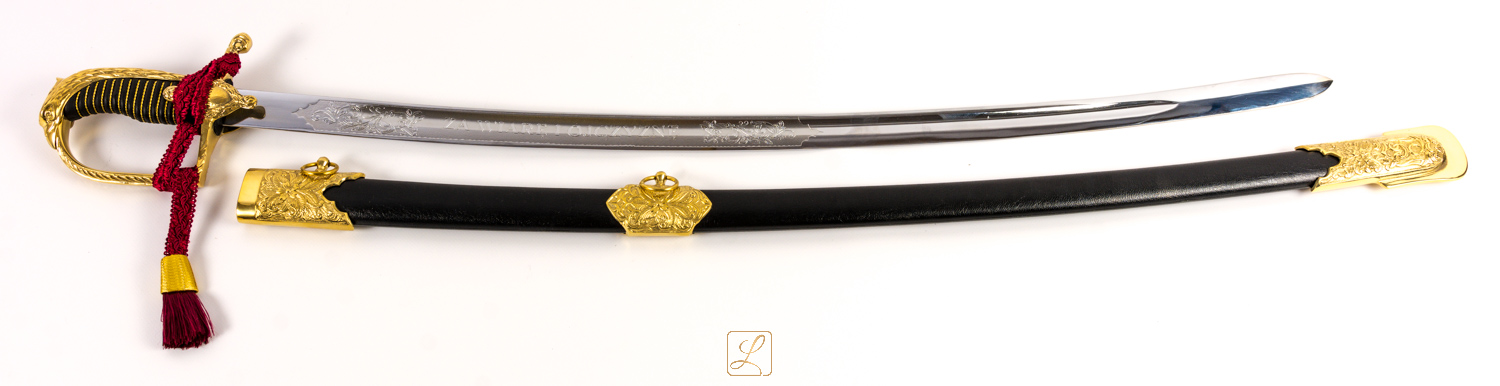 Шабля зразка 1921/22 рр. з унікальною декоративною рукояткою в комплекті з піхвами. Ручка і фурнітура блискуче золото.