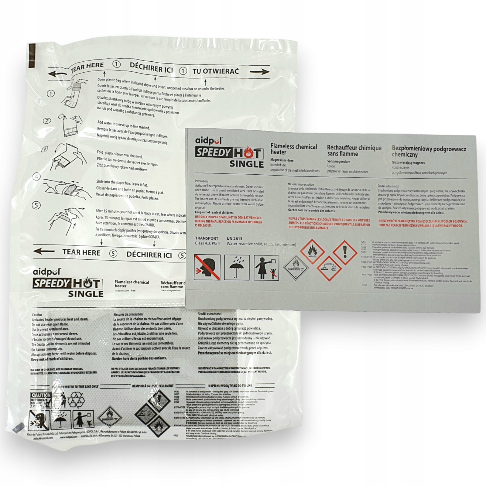 - , оснащені набором для незалежного опалення (Кількість Вода, необхідна для приготування набору, становить близько 350 мл). Завдяки цьому, у нас довгий термін зберігання для споживання