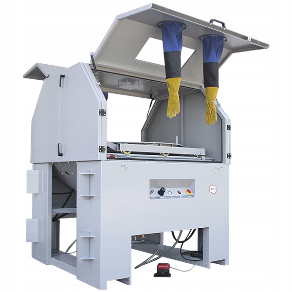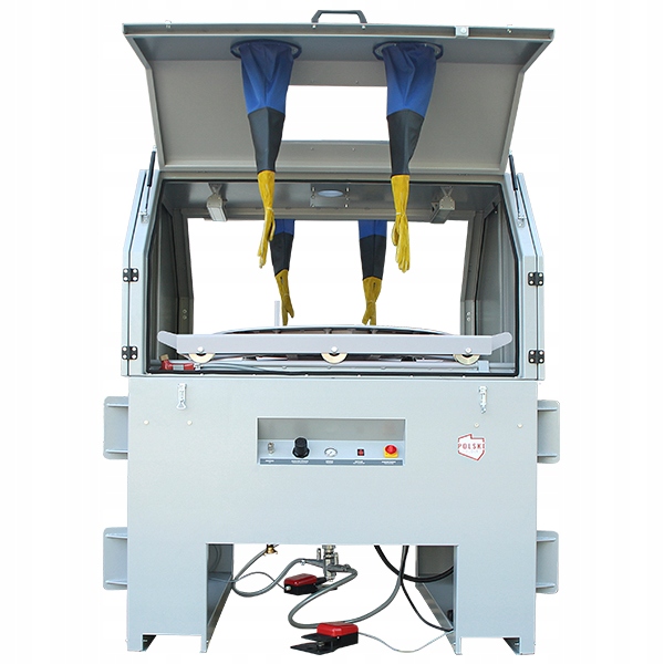 Пропонований абразивоструйний апарат є професійним, безпечним та сучасним приладом від польського виробника. Піскоструминний апарат оснащений жолобом, сформованим під гострим кутом, щоб полегшити ковзання матеріалу, і ревізійним механізмом, що дозволяє швидко спустошити жолоб для абразиву. Використання інноваційних конструктивних рішень дозволяє обробляти деталі вагою до 600 кг в камері з робочими розмірами 1500 х 1340 х 720 мм при тиску до 10 бар. Високоякісний вакуумний абразивний клапан німецького бренду BRAGO характеризується механічною міцністю та стійкістю до стирання вище середнього в порівнянні зі стандартними клапанами, встановленими на дробеструйних машинах конкуруючих компаній. Управління піскоструминним апаратом просте та безпечне завдяки використанню ножної педалі керування.