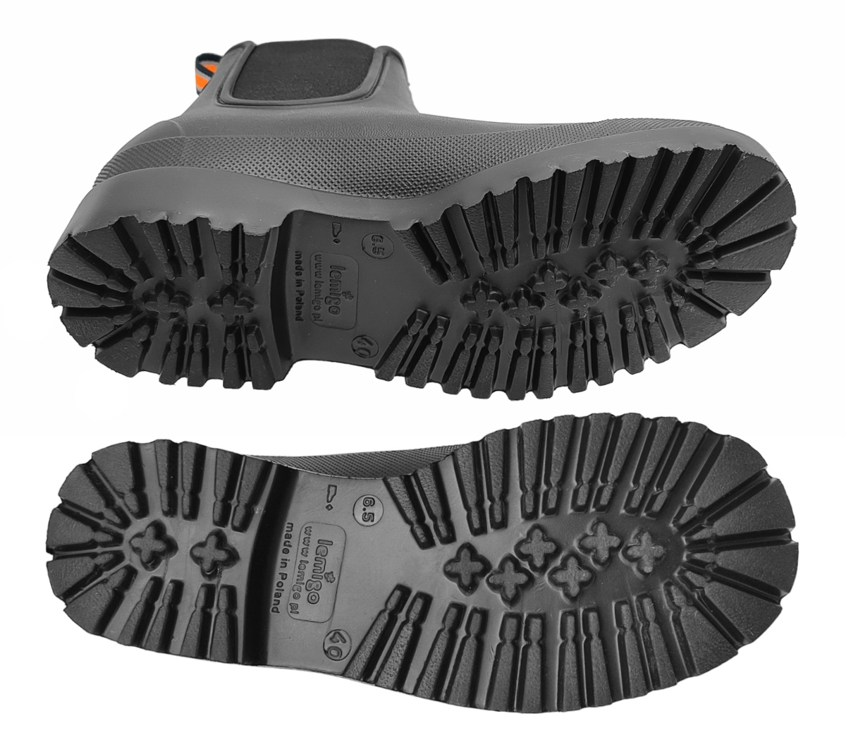 Водонепроникні, надзвичайно легкі чоловічі черевики Челсі в модному стилі, що не підлягає часу. Веллінгтони дуже зручні у використанні та забезпечують оптимальну свободу рухів. Легко підтримувати в чистоті, бруд можна видалити теплою водою з необов’язковим додаванням миючого засобу. Ідеальна альтернатива традиційним черевикам Веллінгтон. Стильний повсякденний варіант, який ефективно захищає від бруду та вологи. Колір: чорний. Вага: пара важить приблизно 0,6 кг. Матеріал: надлегкий матеріал EVA. Взуття легше, ніж вироби з гуми або ПВХ. EVA - це матеріал, стійкий до деформації, розривів і шкідливого сонячного світла. Зберігає свої еластичні властивості навіть при дуже низьких температурах (до -30°C). Конструкція: модель - чоловічі черевики челсі, верх з боків оброблений гумою, що полегшує взування і знімання, ручка ззаду, анатомічна форма, змінна устілка проти поту, прозорий протектор. Міцна підошва гарантує хороше зчеплення та амортизацію п’яти, ефективно усуваючи удари під час ходьби. Застосування: захист від дощу та бруду, для повсякденного використання та роботи, міського стилю в погану погоду, роботи в саду, сільськогосподарські роботи - ферма, сади, сади, стайні, для використання на човнах - вітрильний спорт тощо. всі роботи та польова діяльність.