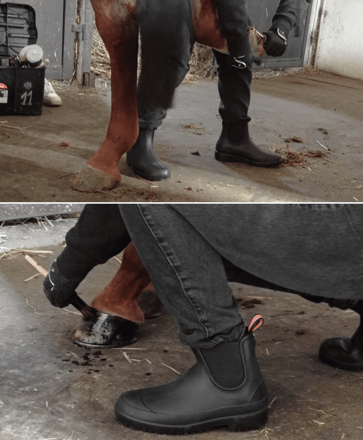 Водонепроникні, надзвичайно легкі чоловічі черевики Челсі в модному стилі, що не підлягає часу. Веллінгтони дуже зручні у використанні та забезпечують оптимальну свободу рухів. Легко підтримувати в чистоті, бруд можна видалити теплою водою з необов’язковим додаванням миючого засобу. Ідеальна альтернатива традиційним черевикам Веллінгтон. Стильний повсякденний варіант, який ефективно захищає від бруду та вологи. Колір: чорний. Вага: пара важить приблизно 0,6 кг. Матеріал: надлегкий матеріал EVA. Взуття легше, ніж вироби з гуми або ПВХ. EVA - це матеріал, стійкий до деформації, розривів і шкідливого сонячного світла. Зберігає свої еластичні властивості навіть при дуже низьких температурах (до -30°C). Конструкція: модель - чоловічі черевики челсі, верх з боків оброблений гумою, що полегшує взування і знімання, ручка ззаду, анатомічна форма, змінна устілка проти поту, прозорий протектор. Міцна підошва гарантує хороше зчеплення та амортизацію п’яти, ефективно усуваючи удари під час ходьби. Застосування: захист від дощу та бруду, для повсякденного використання та роботи, міського стилю в погану погоду, роботи в саду, сільськогосподарські роботи - ферма, сади, сади, стайні, для використання на човнах - вітрильний спорт тощо. всі роботи та польова діяльність.