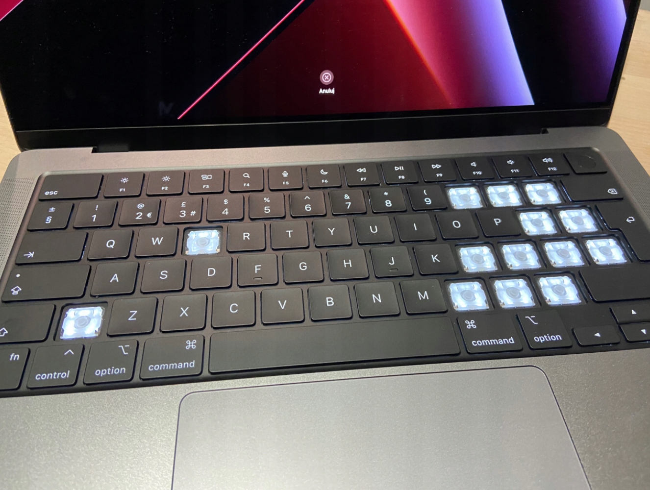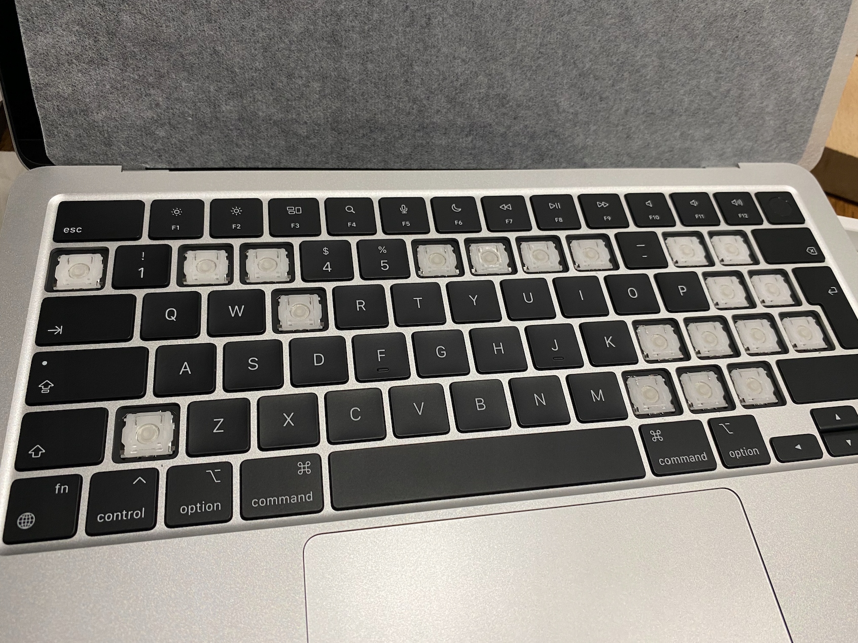 Ми вже встановили ключі на MacBook Pro 16 і 13. Вони ідеально підходять . Видимої різниці немає. Збірка дуже проста. Піддираємо ключ знизу один раз праворуч і один раз ліворуч до клацання. Потім витягуємо ключ знизу. Вставляйте новий знизу вгору, натискаючи клавішу в нижній зоні.