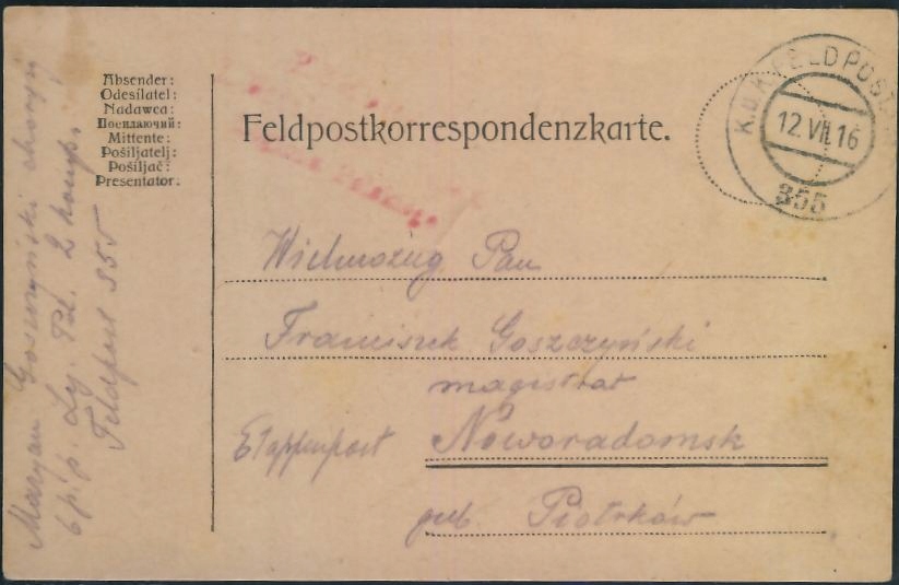 Польські легіони 6 pp 2 comp Feldpost 355 1916