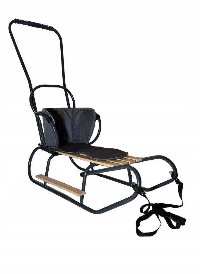 Сильні металеві санки, виготовлені в Польщі з демонтажним високим спиною, штовхачами, комфортними матрацами та підставками