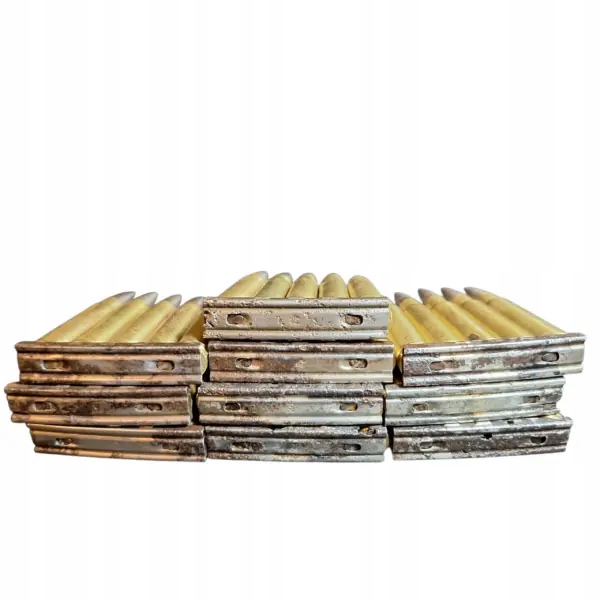 Польські патрони Deko Mauser wz 29 з польським заряджанням, в комплект входить 5 польських патронів deko з польським заряджанням, Заряджання виробництва: Fabryka Wyrobów Metalowych Wacław Czajkowski i Spółka у Варшаві, а також PK. ваги в гарному складському стані, маркування тільки орлом і N, всі ваги з однаковим маркуванням і роком випуску, що буває рідко, ваги не свердлені. Для замовлення набори підбираються випадковим чином. Ціна вказана за один комплект, тобто 5 деко-патронів і зарядний пристрій.