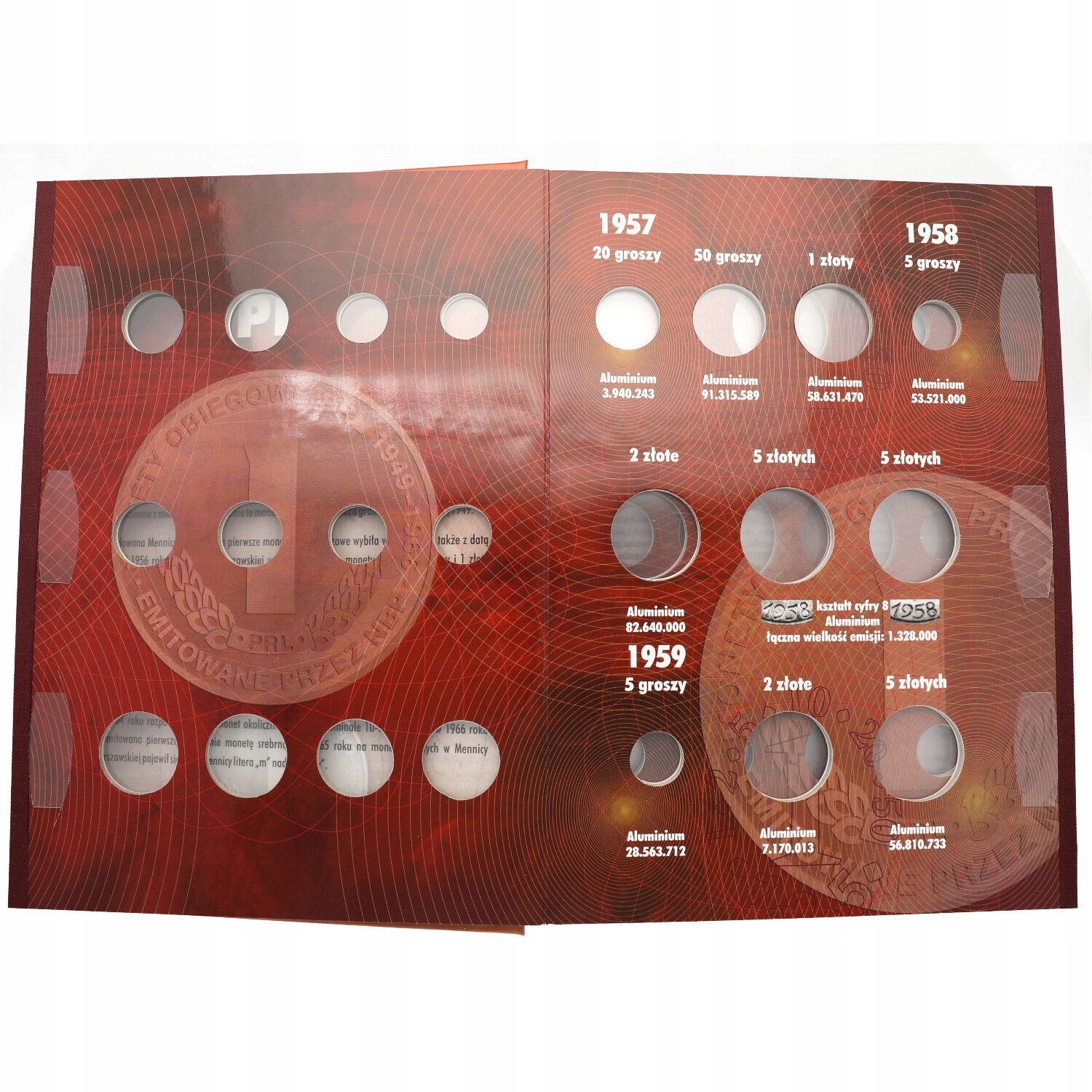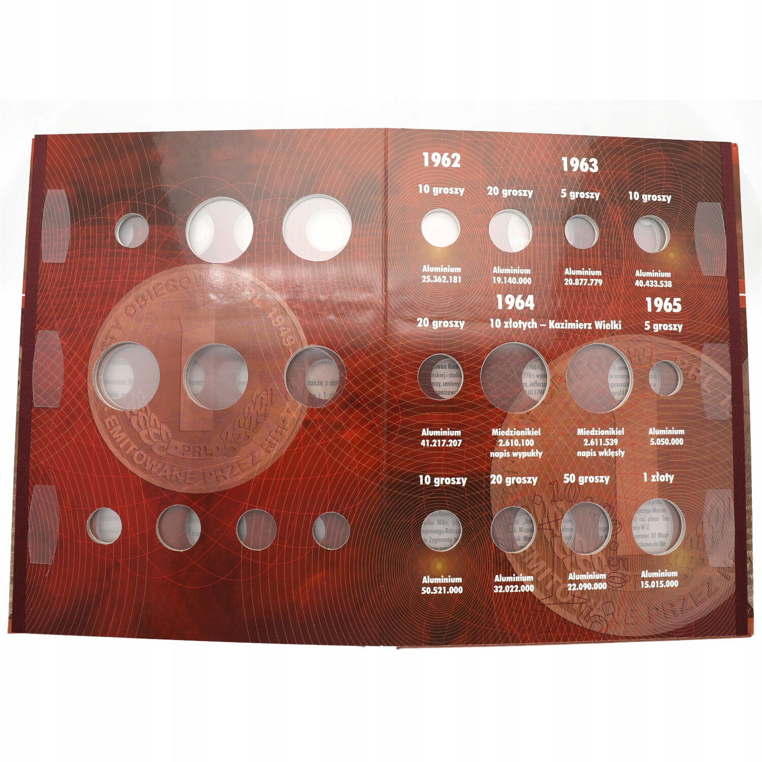 Альбом для обігових монет періоду Польської Народної Республіки - том І охоплює роки 1949 - 1966.