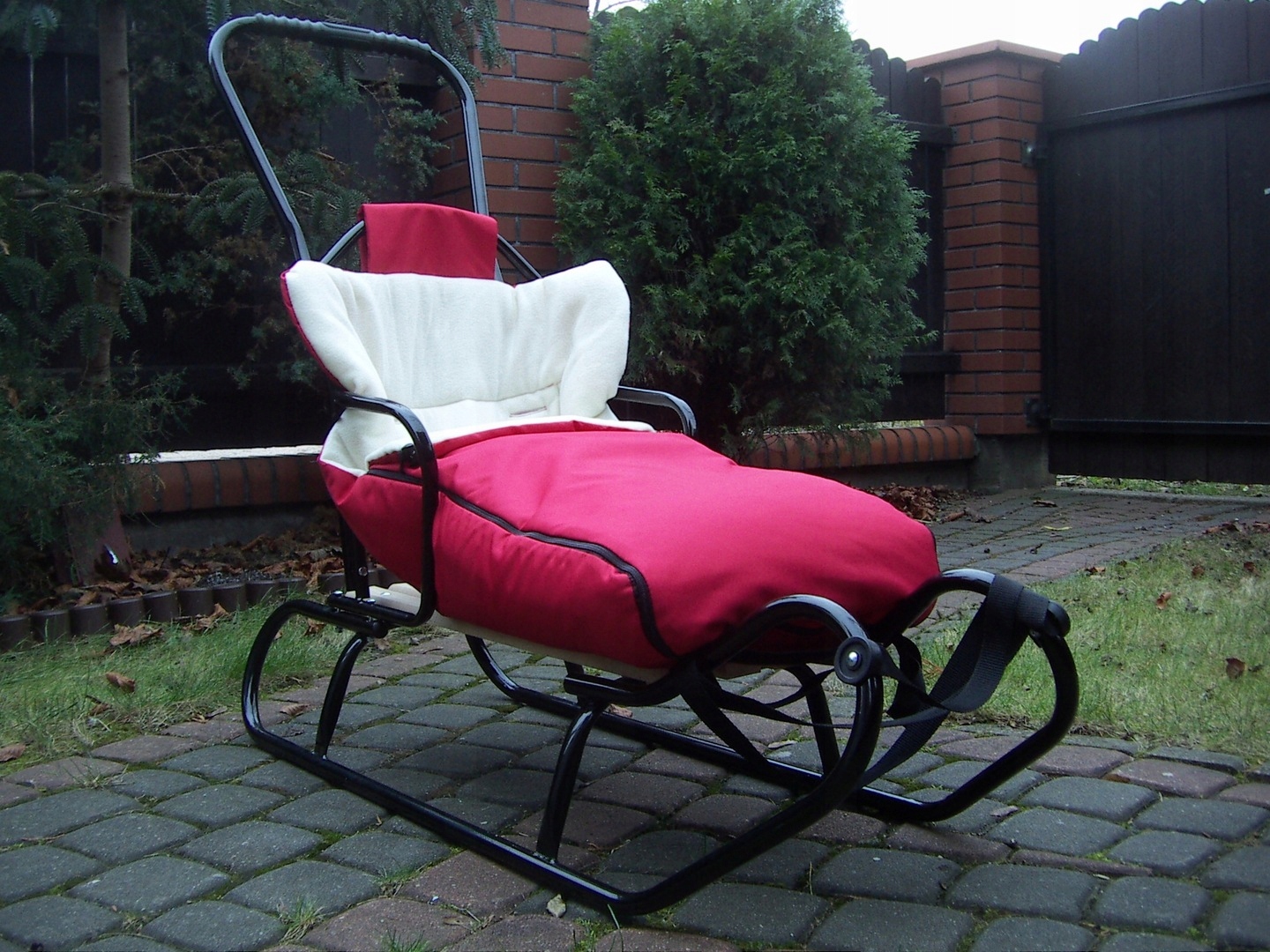 ПОЛЬСЬКІ САНКИ ЗІ СПИНКОЮ, ПУШЕРОМ І СПАЛЬНИКОМ