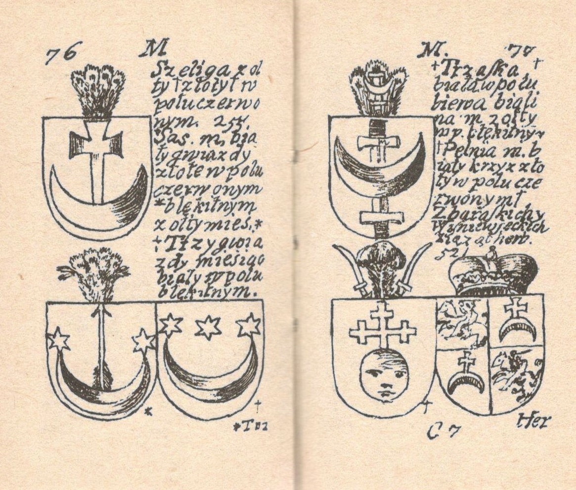 Чудовий передрук арсенал (мініатюра – 57 х 95), у твердій шкіряній палітурці з позолотою та тисненням на першій сторінці обкладинки; на 160 сторінках містить малюнки та описи близько 500 гербів польських родин. Wydawnictwa Artystyczne i Filmowe, Warszawa 1991