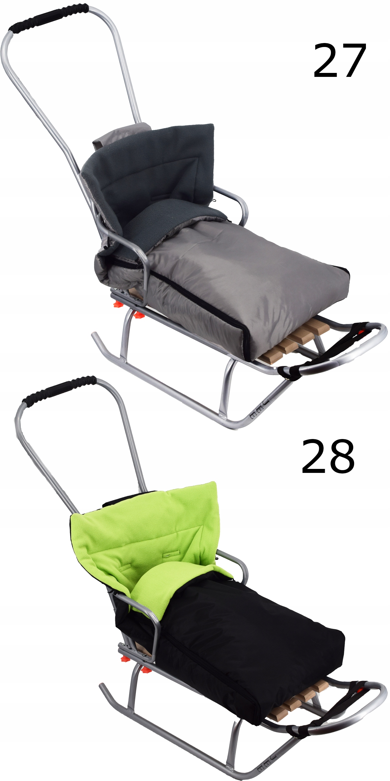 Польські традиційні металеві санки JEE M BACKREST + PUSHER + спальний мішок кольори