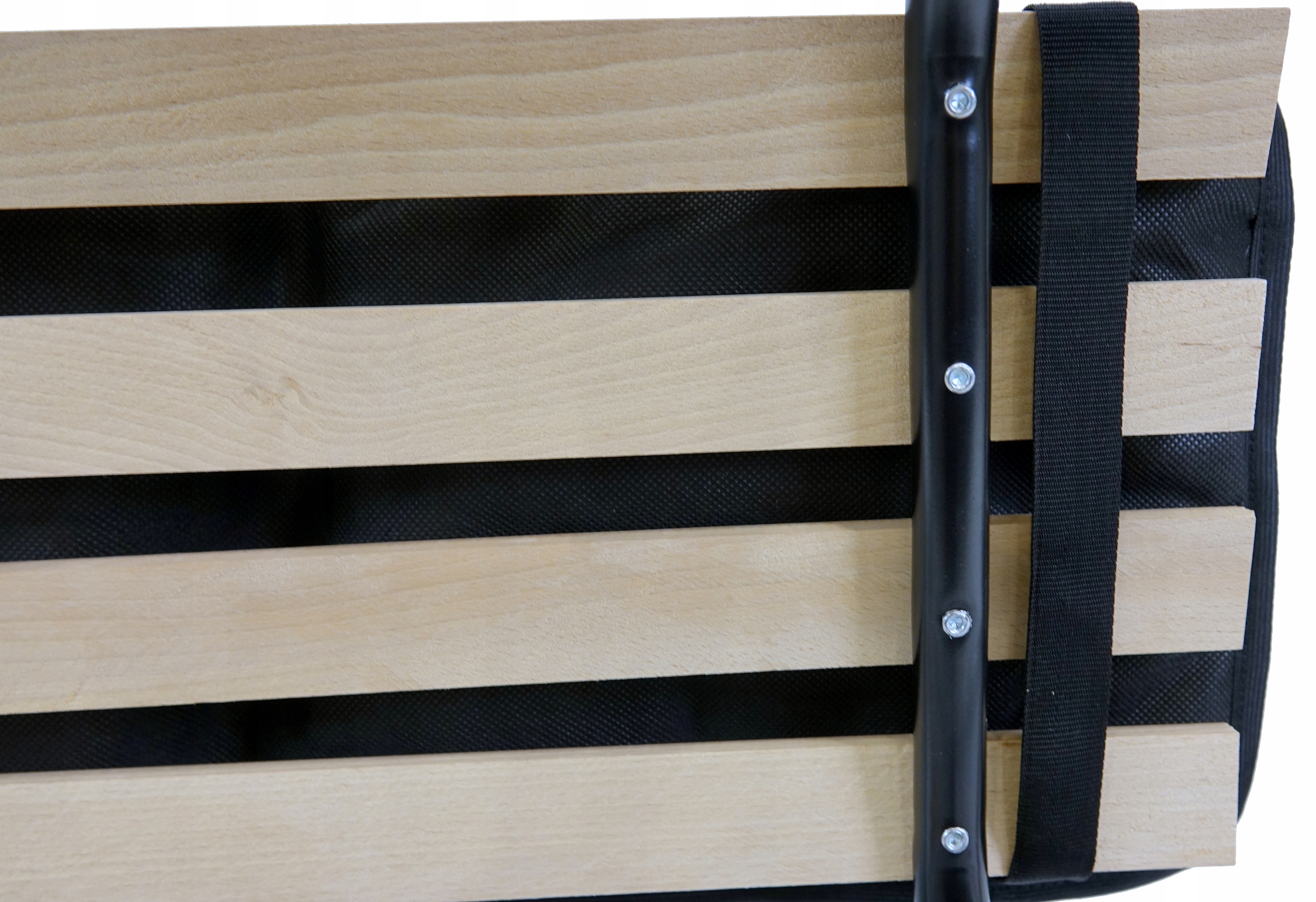 Матрац міцно кріпиться за допомогою двох лямок, які розміщуються на дошках знизу, а верх матраца кладеться на спинку.